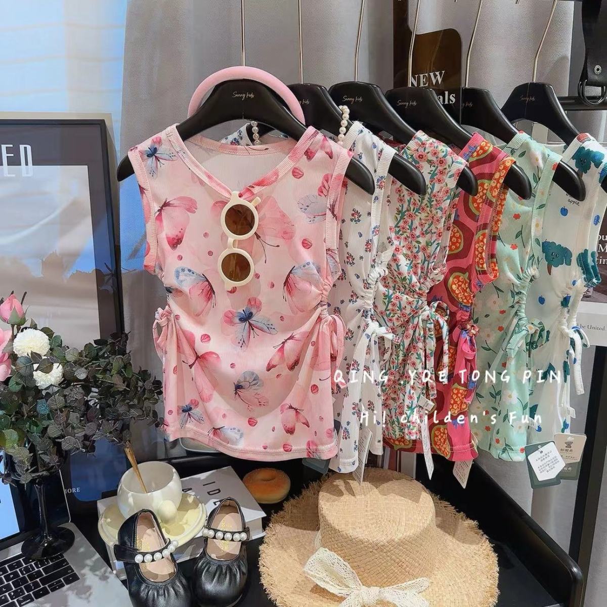2025夏季新款公主半衣裙儿童冰丝裙子女童洋气碎花沙滩风薄背心裙
