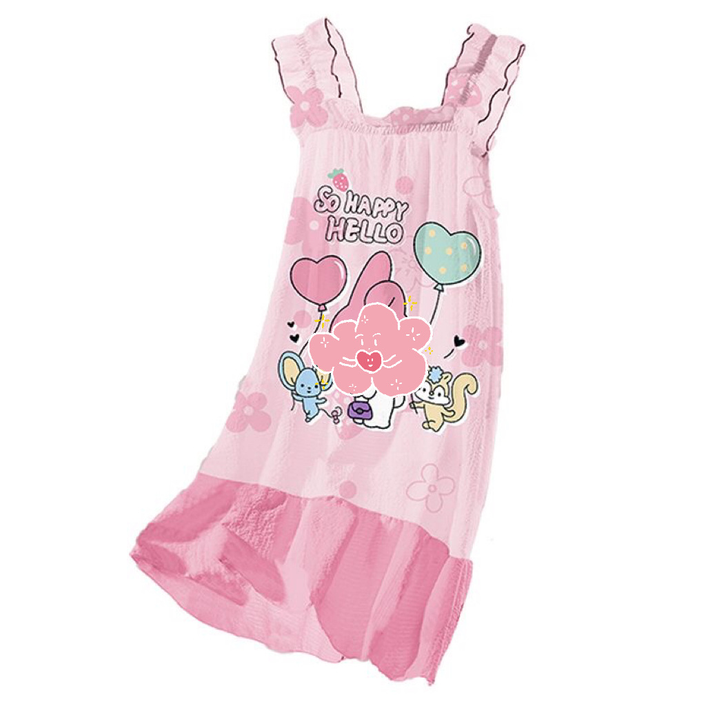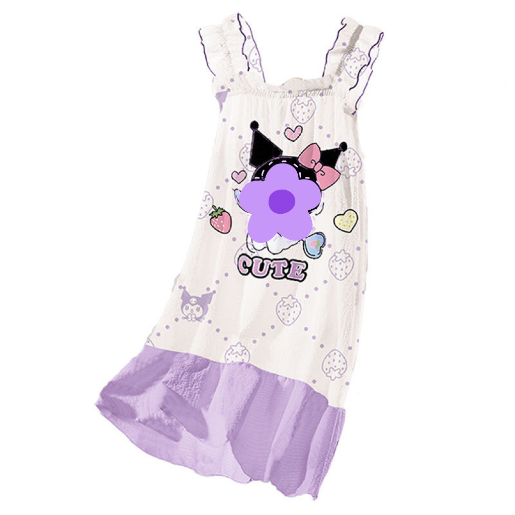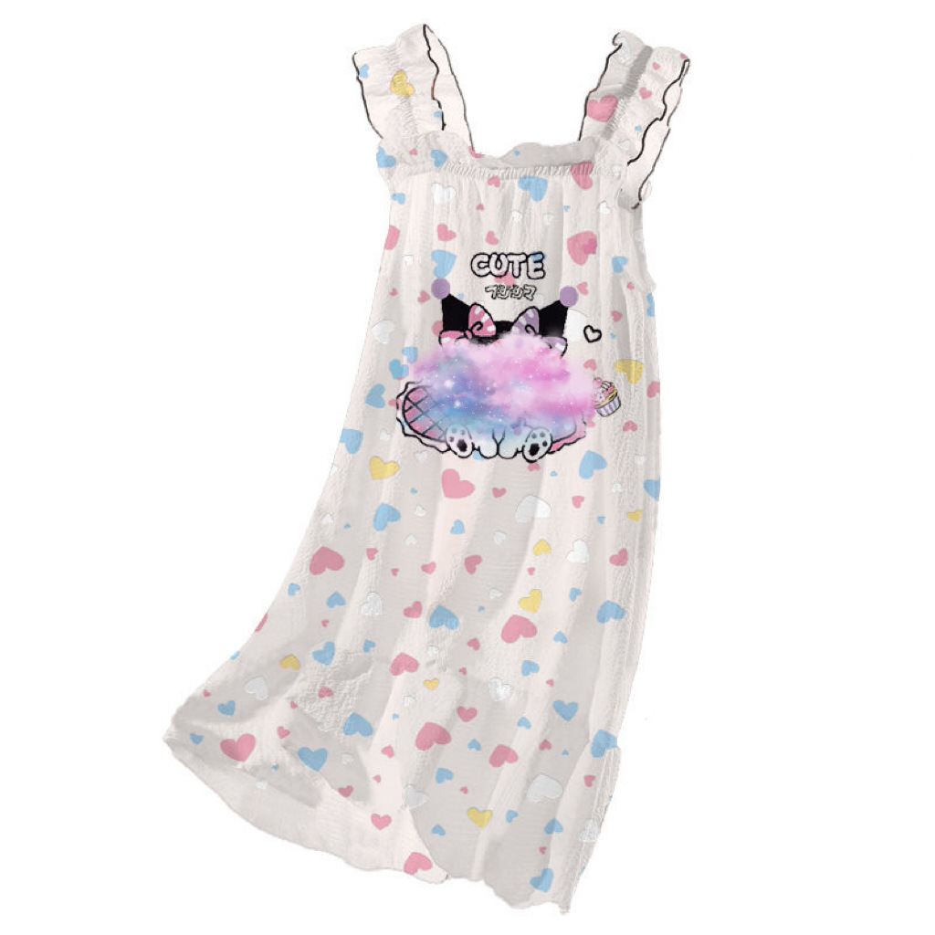 新款睡衣薄款夏季女童睡裙吊带背心中大童印花ins可爱连衣裙