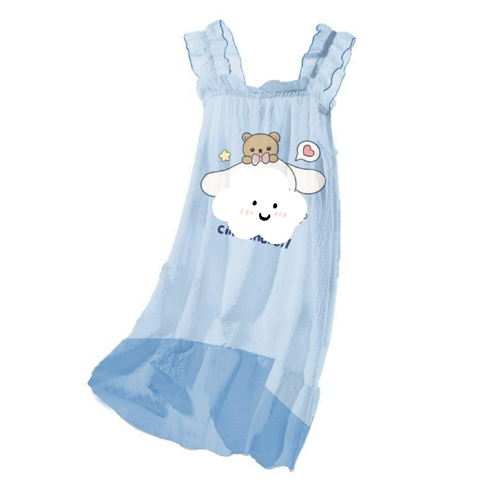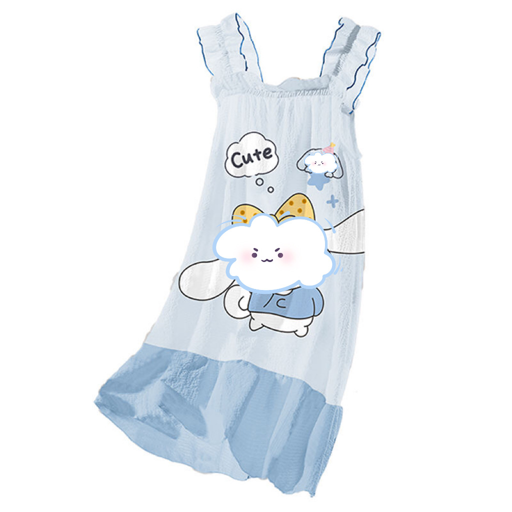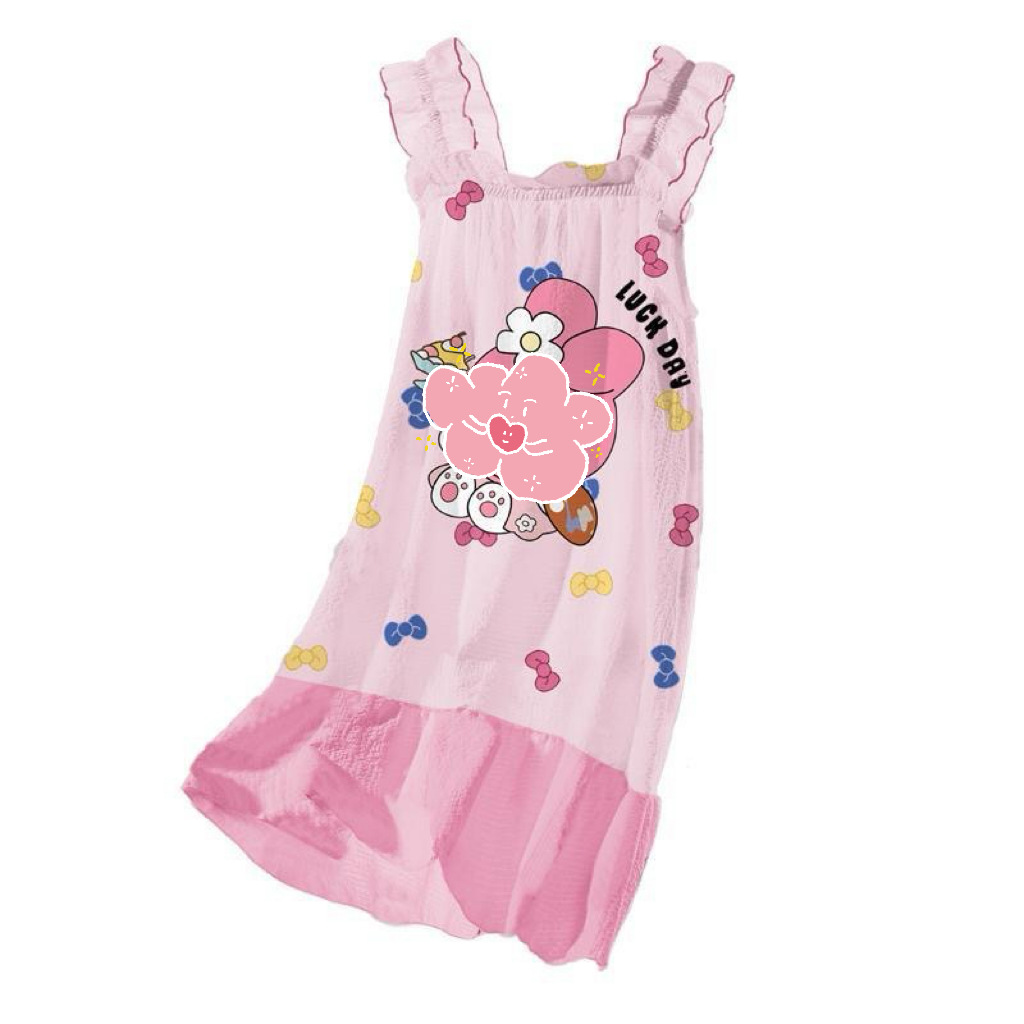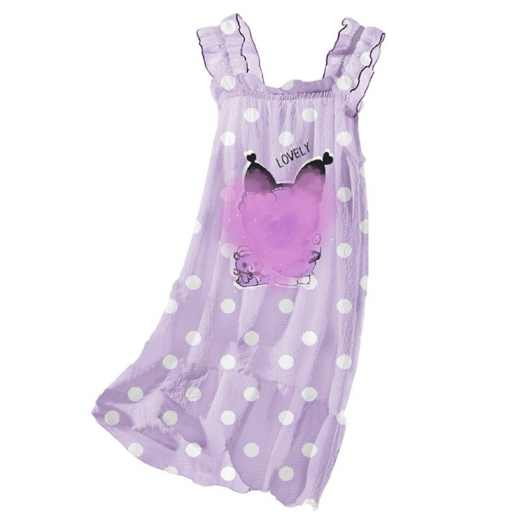 新款睡衣薄款夏季女童睡裙吊带背心中大童印花ins可爱连衣裙