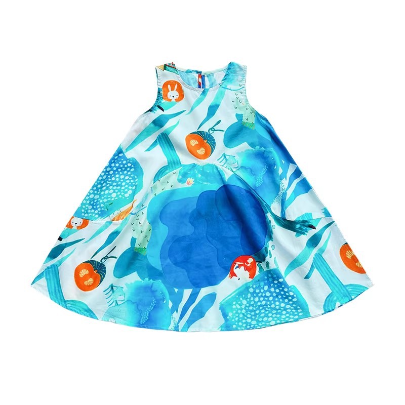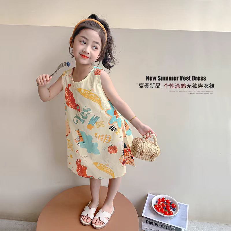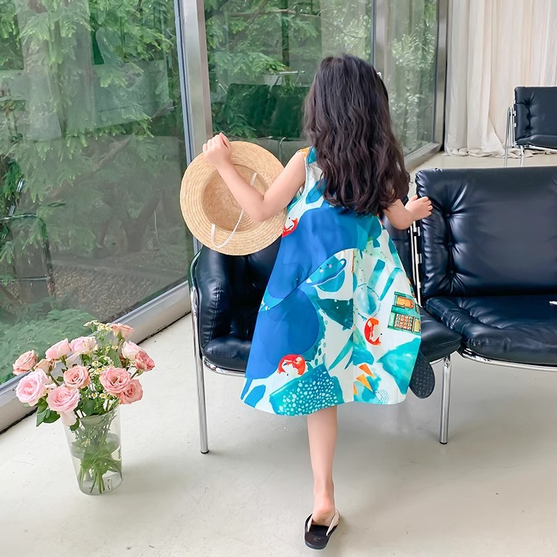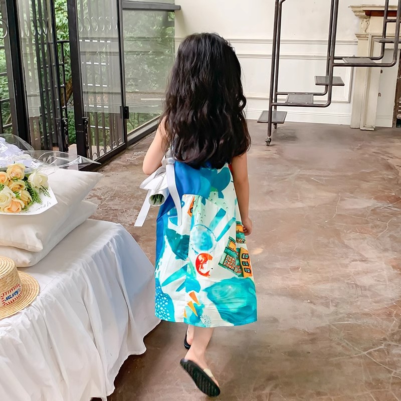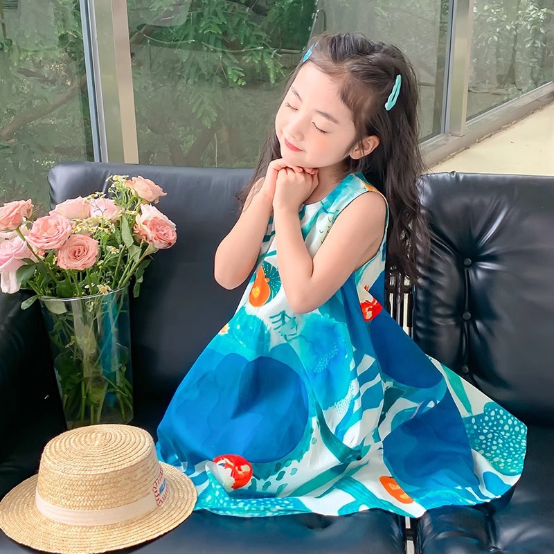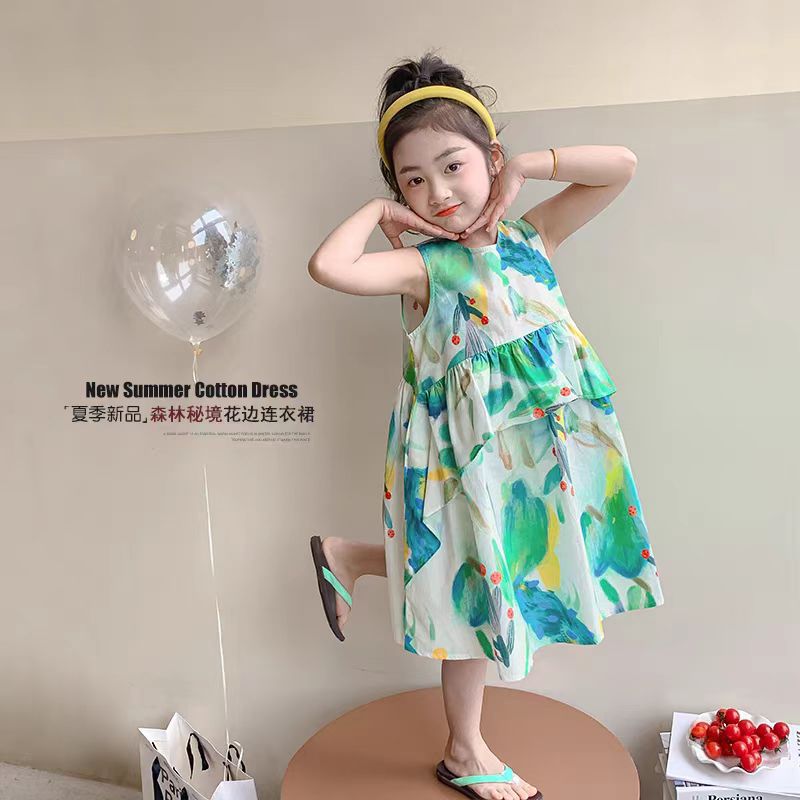 女童夏季连衣裙女宝中小童a字裙甜美公主裙碎花公主裙飞袖花朵裙