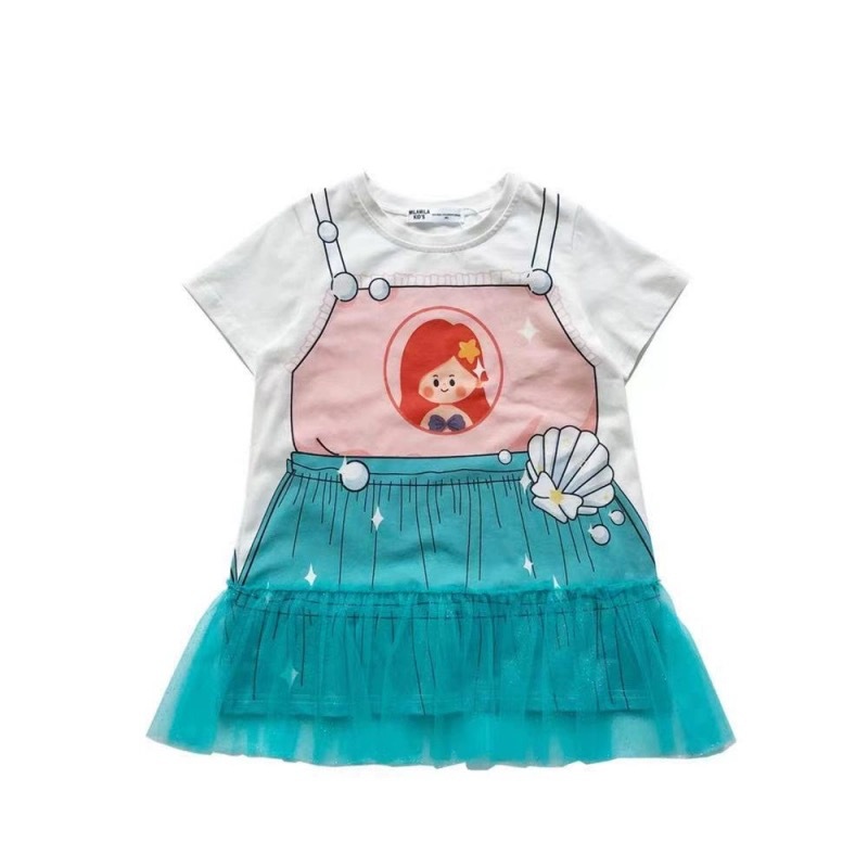 女童卡通假两件网纱连衣裙短袖T恤裙夏季新款洋气宝宝公主蕾丝裙
