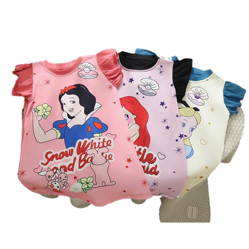 新款夏季女童休闲卡通T恤长裙公主裙女孩可爱印花连衣裙洋气新款