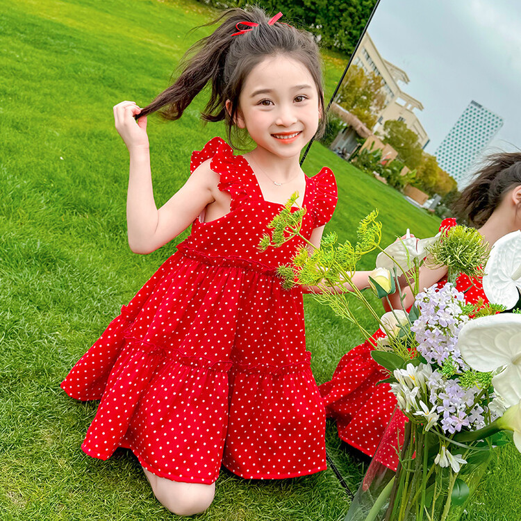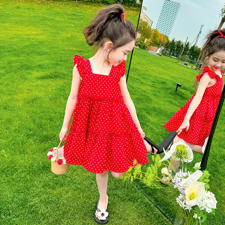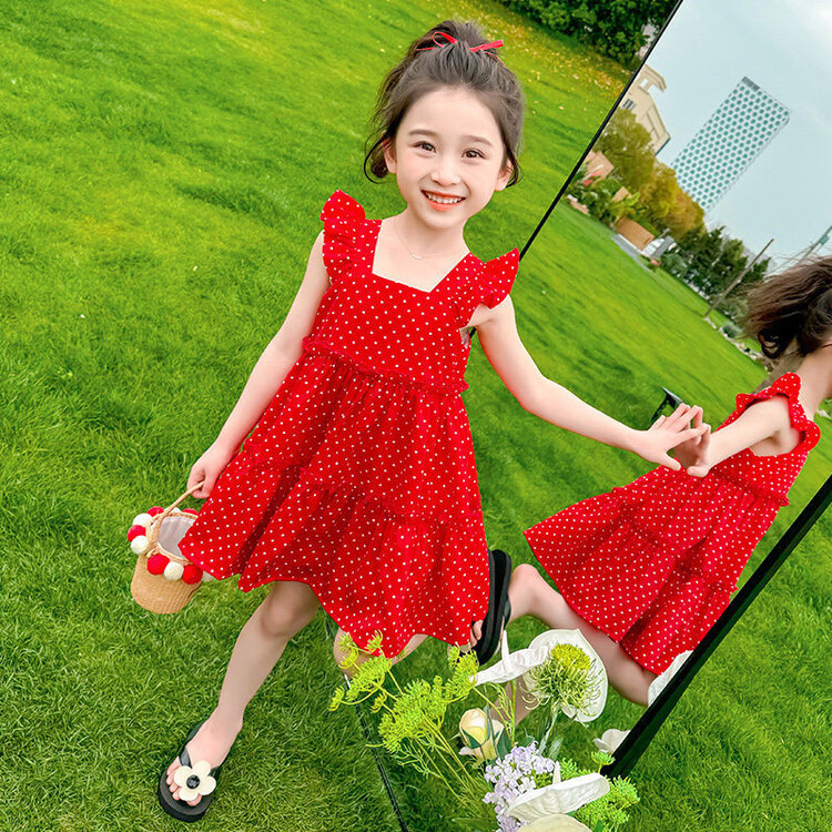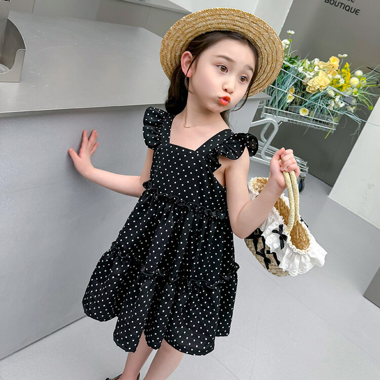 女童连衣裙夏装新款儿童中小童波点飞袖背心宝宝夏季圆点裙子