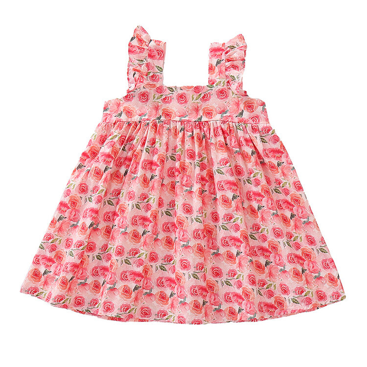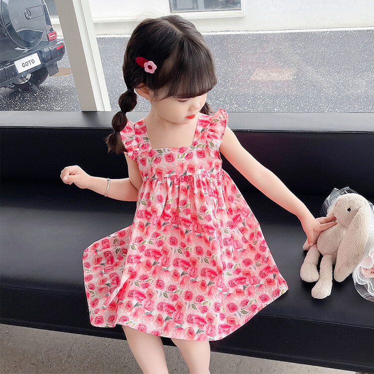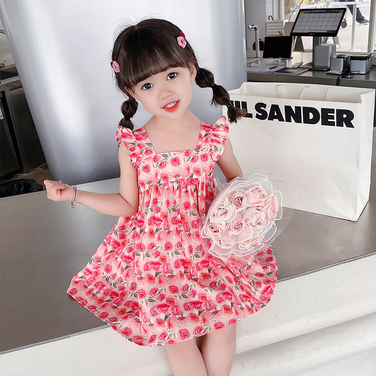 女童背心连衣裙夏季新款宝宝玫瑰公主风吊带裙儿童沙滩裙网红爆版