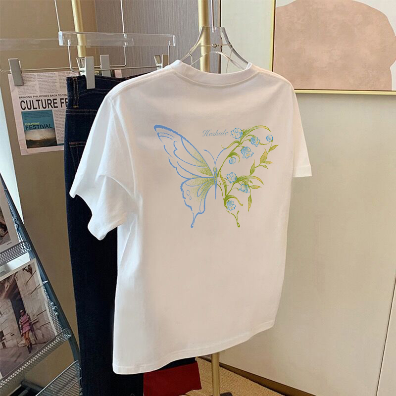 白色纯棉短袖t恤女设计感小众夏季2025新款宽松百搭正肩体恤上衣