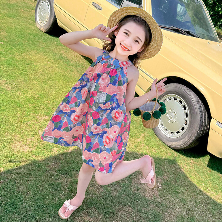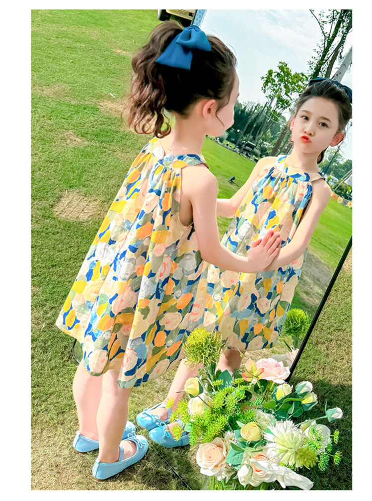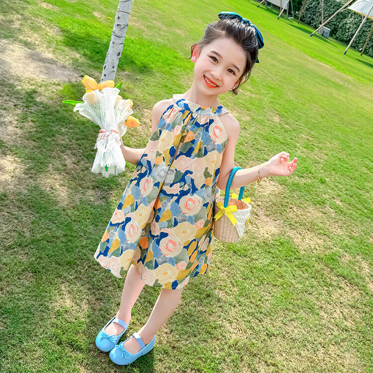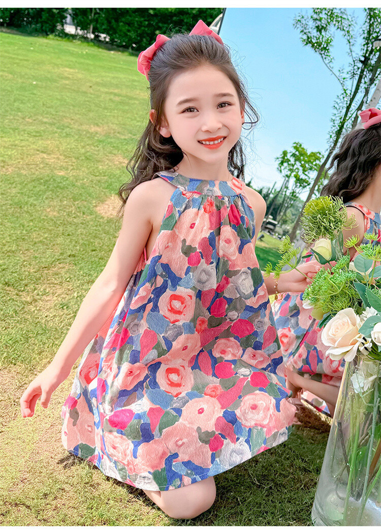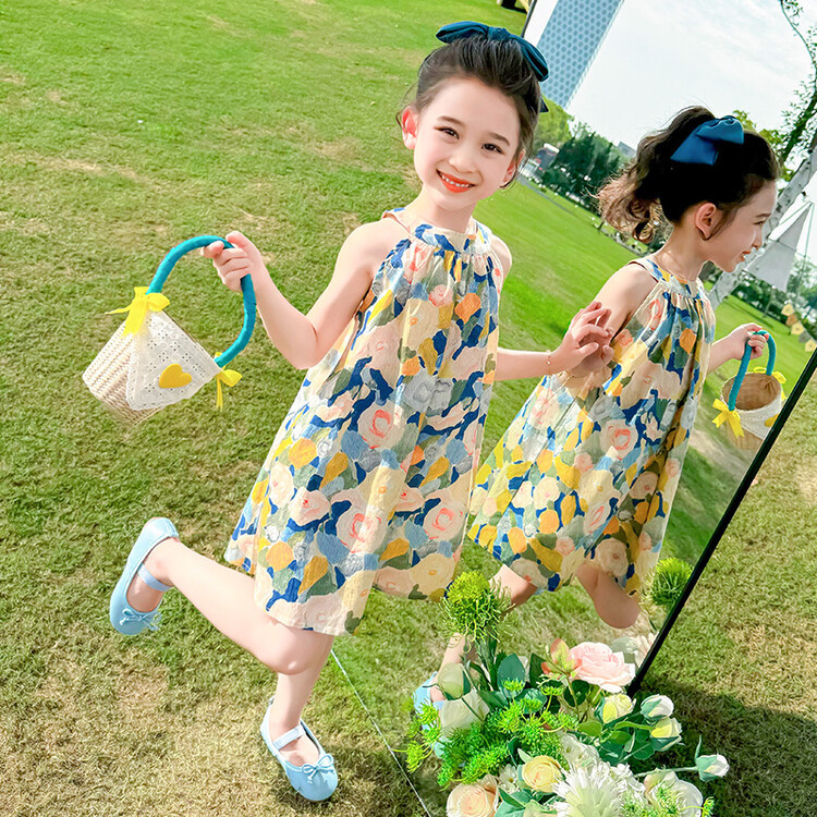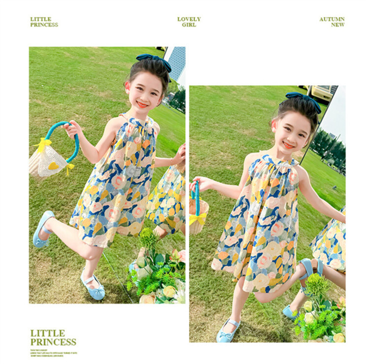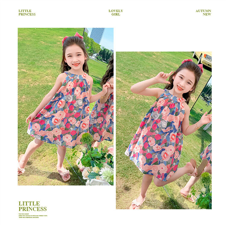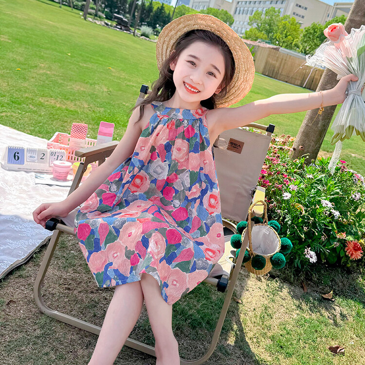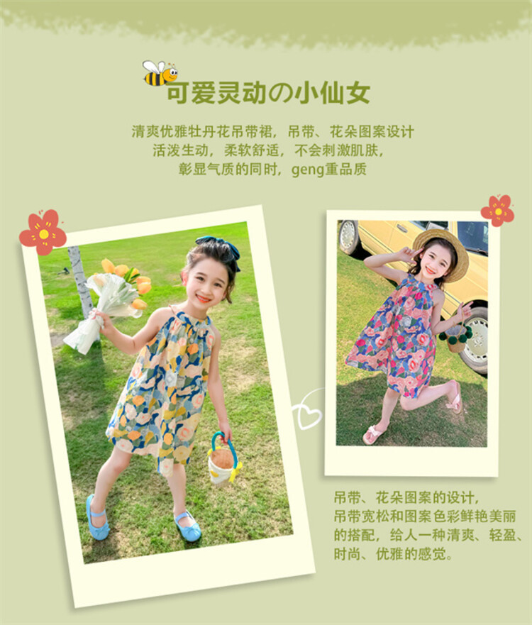 女童吊带连衣裙夏季新款儿童背心裙洋气宝宝碎花公主裙子