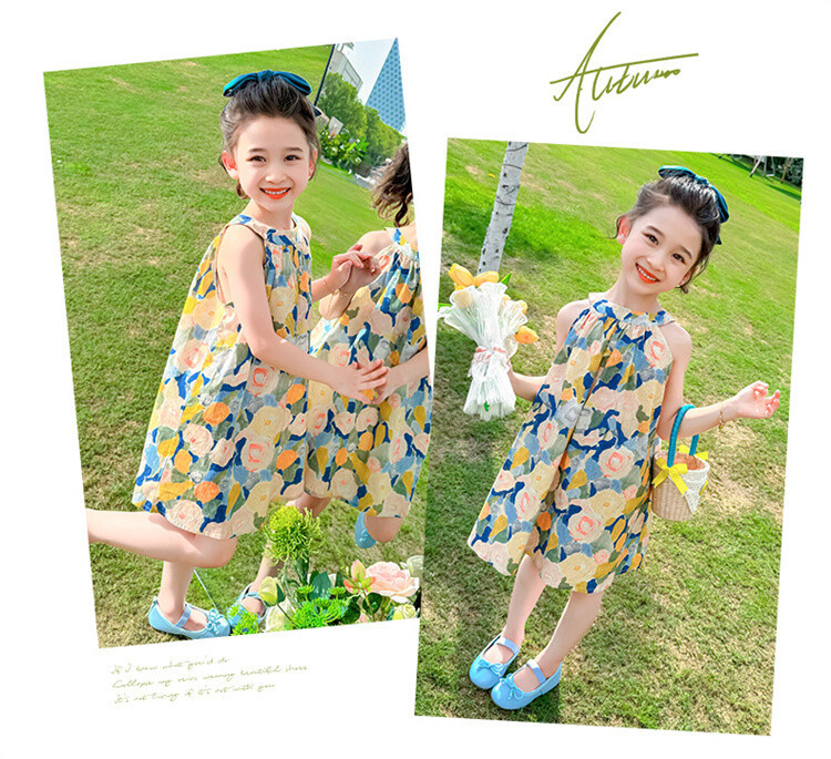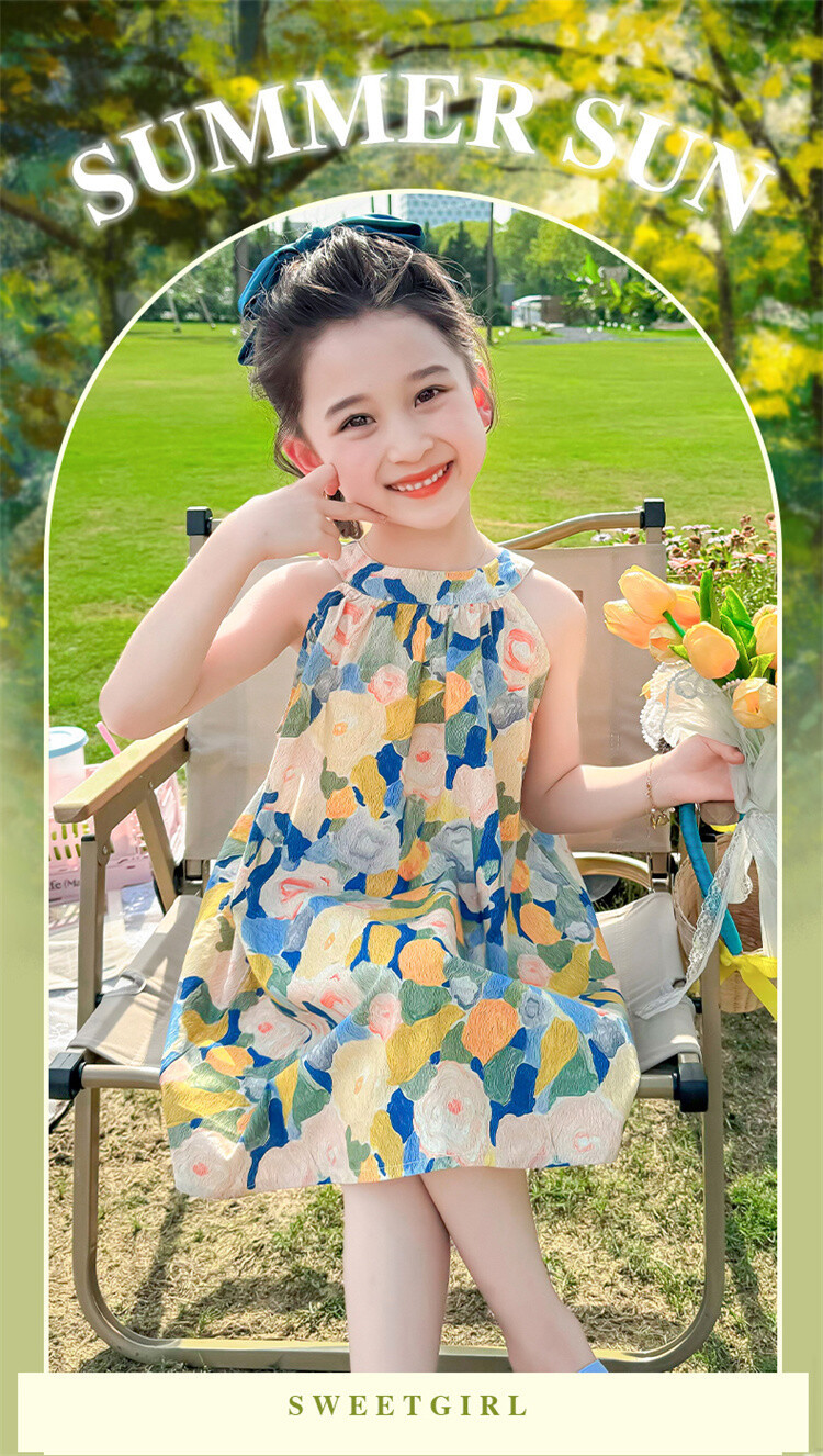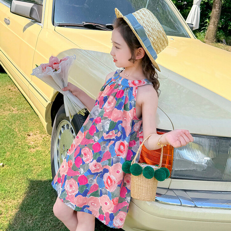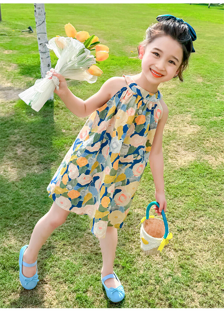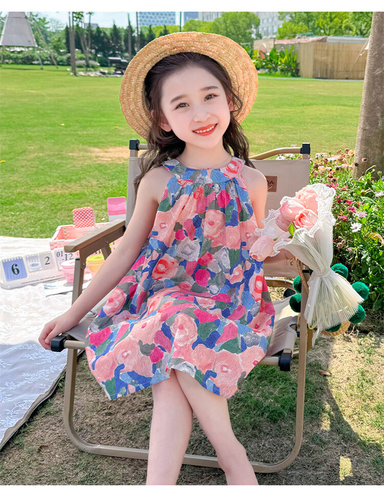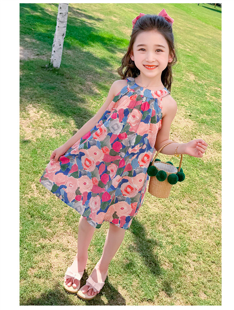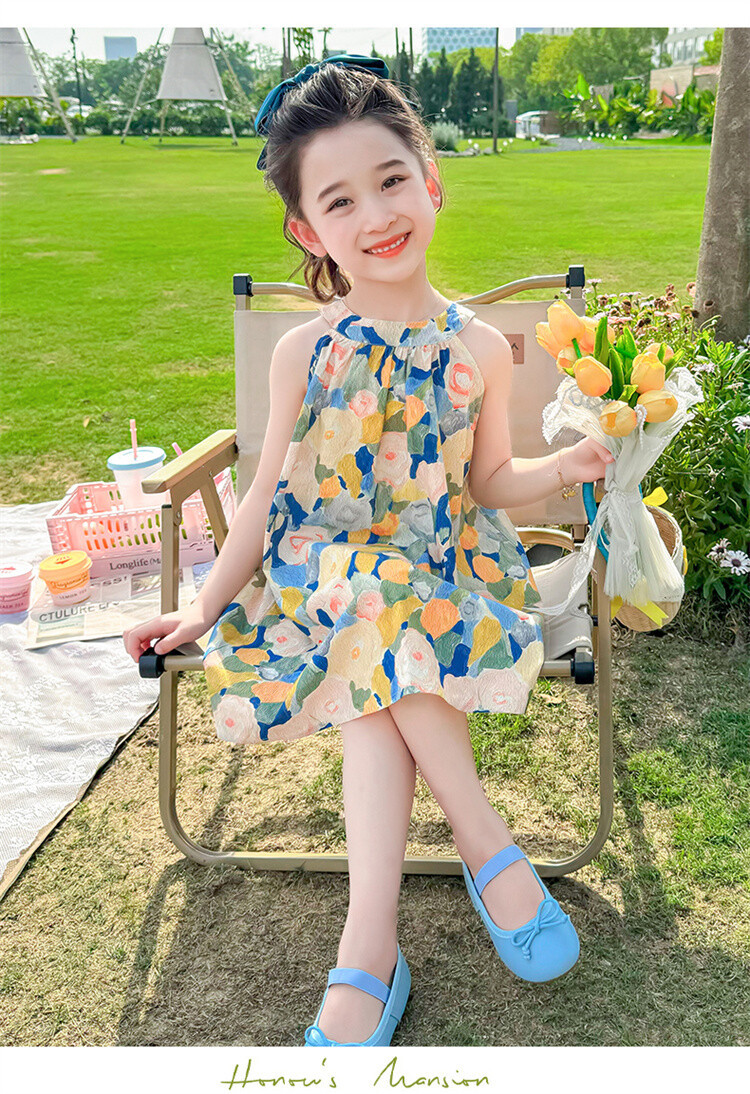 女童吊带连衣裙夏季新款儿童背心裙洋气宝宝碎花公主裙子