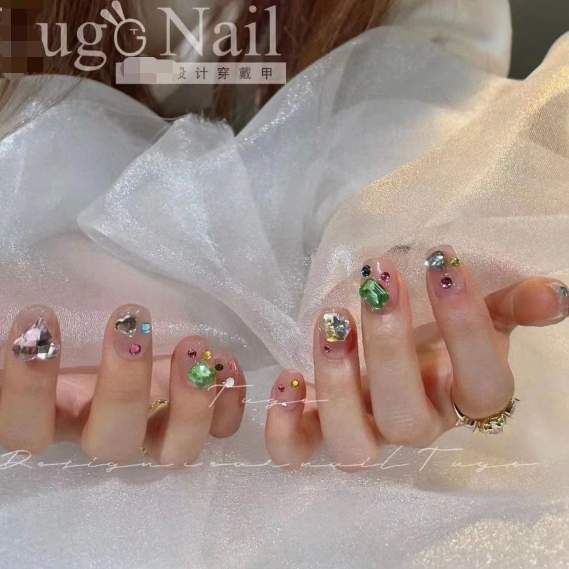 纯手工光疗穿戴甲罗曼蒂克穿戴甲批发成品重复使用美甲贴片