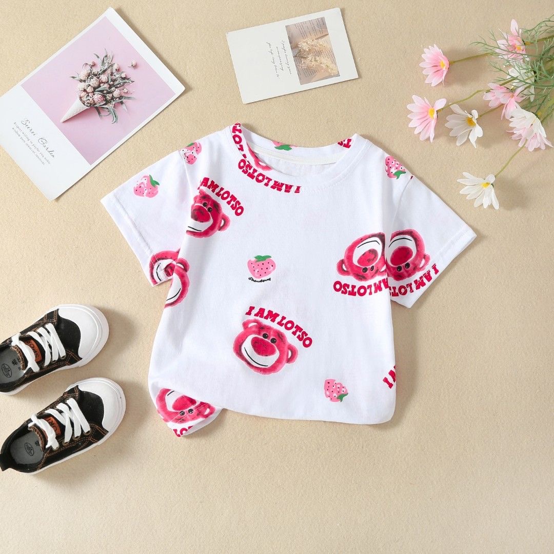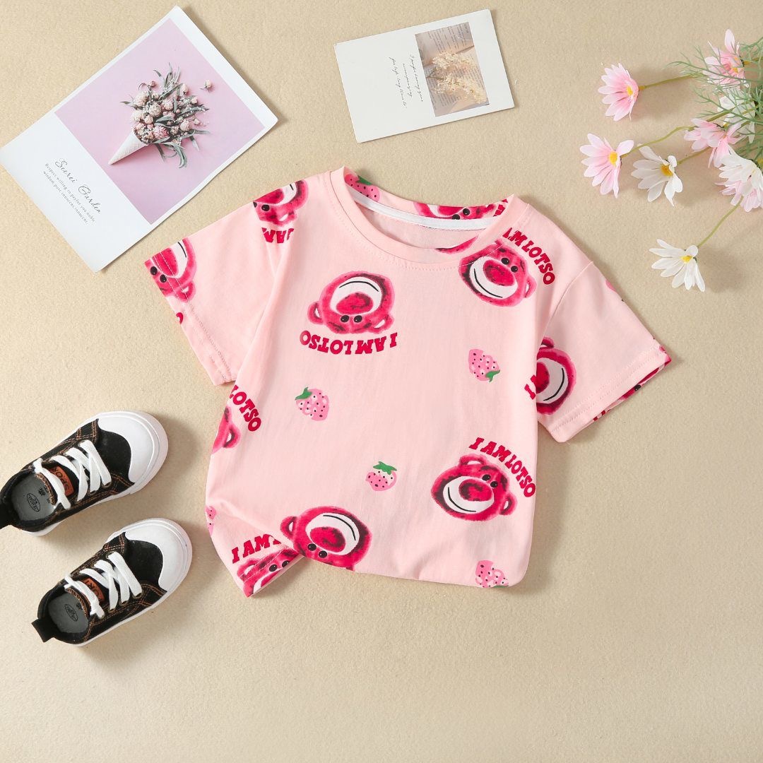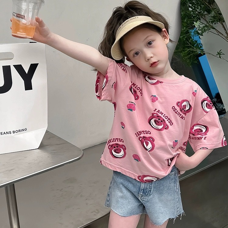 年童装草莓熊卡通短袖t恤新款小童宝宝女童夏季童装儿童夏装