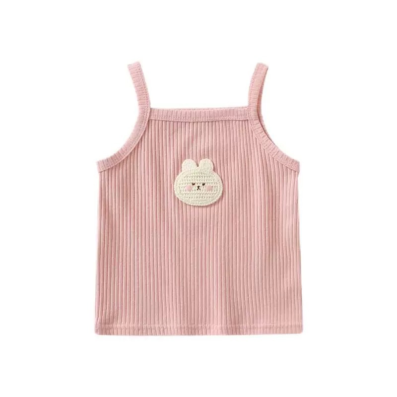女宝无袖上衣卡通刺绣针织修身弹力背心女童吊带衫糖果色夏装