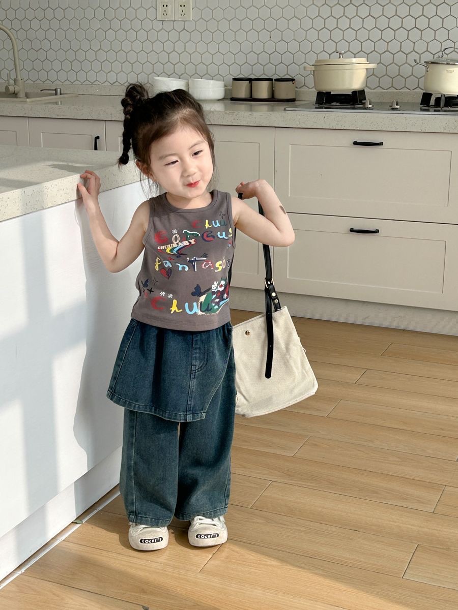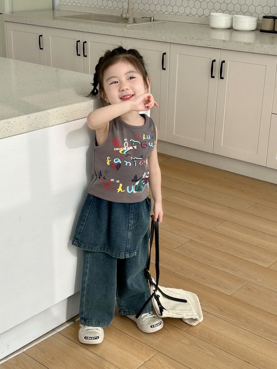夏美式复古字母涂鸦小背心女童潮流个性短款修身百搭无袖T恤