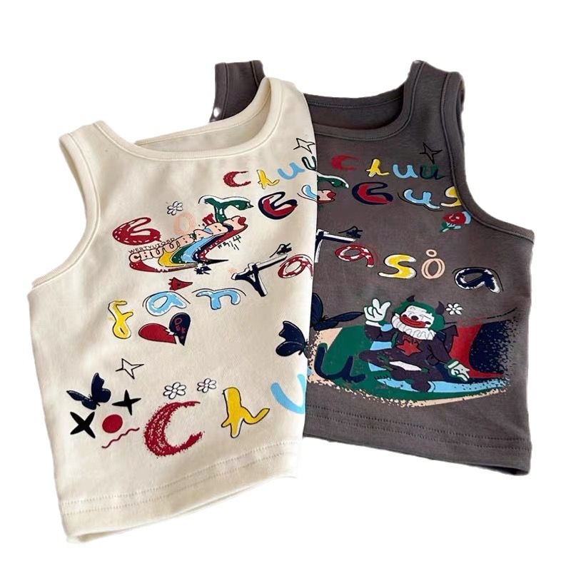 美式复古字母涂鸦小背心女童夏季甜酷洋气个性短款修身百搭无袖T