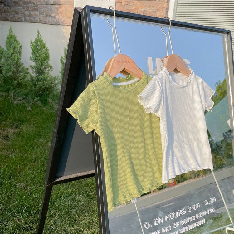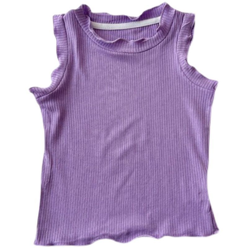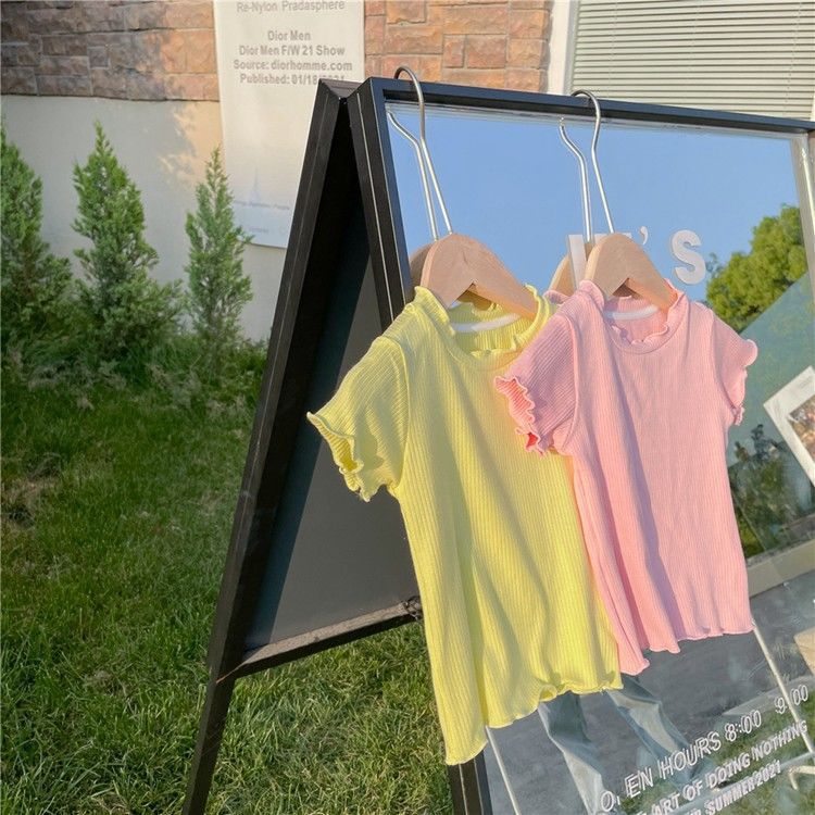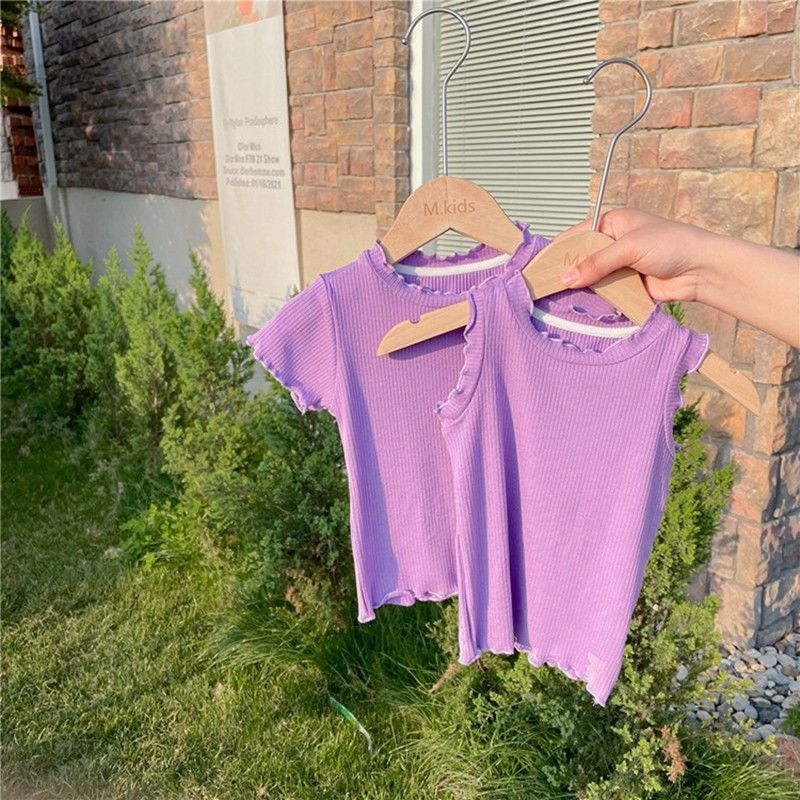 糖果色韩版女童夏日t恤花边无袖夏装百搭姐妹木耳边中小童上衣