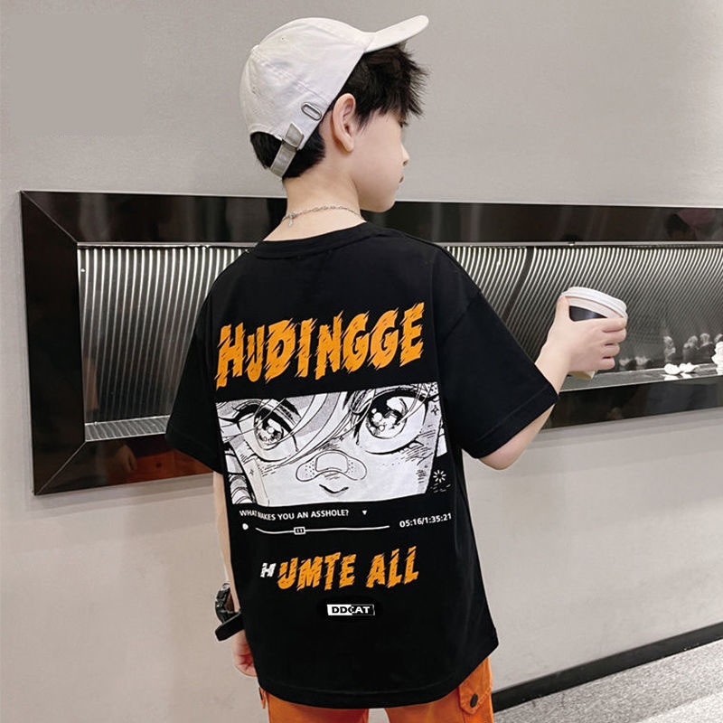 韩范儿童短袖t恤宽松圆领棉质中小童打底衫男童女童上衣
