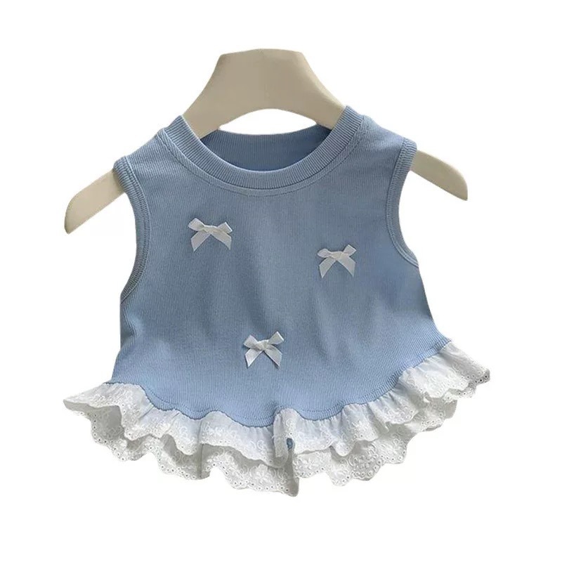 女童韩版蝴蝶结小背心夏装新款儿童甜美拼接花边无袖T恤上衣潮