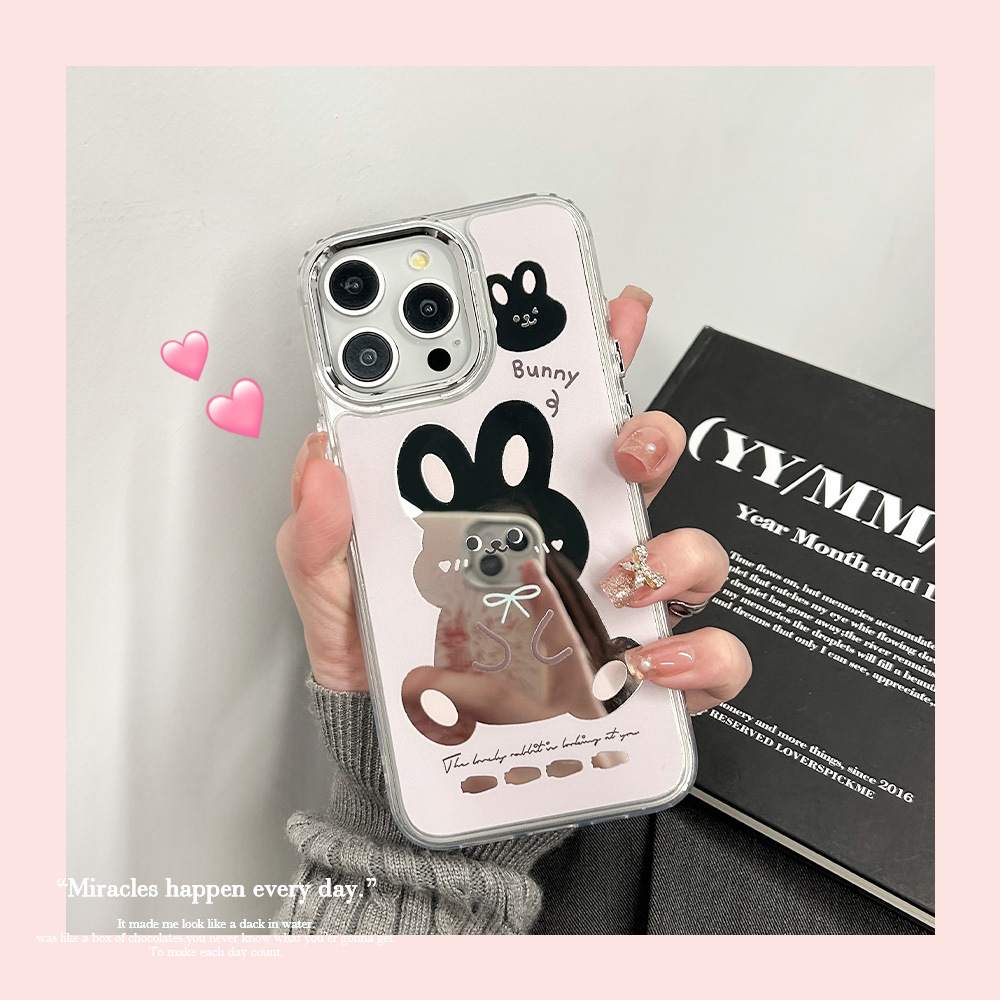 可爱兔子镜面苹果14手机壳iPhone13ProMax硅胶软壳12女日韩风