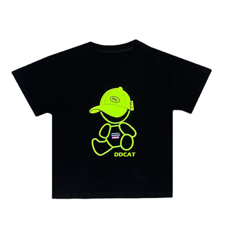 美式复古设计感小熊短袖t恤男女夏季新款小众甜酷情侣装上衣