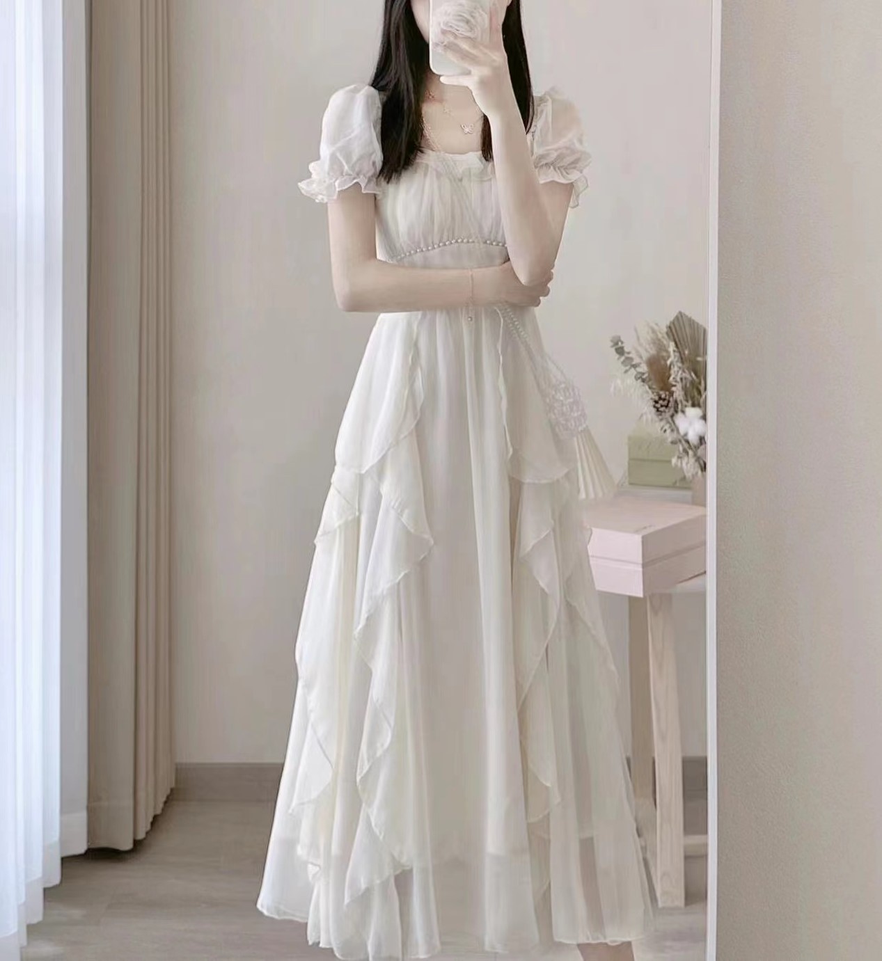 法式白色高级感仙女连衣裙女夏季新款超仙公主裙温柔风长裙子女