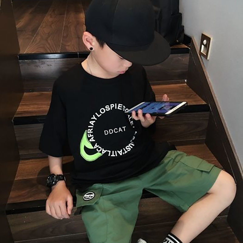 童装夏季纯棉休闲笑脸t恤衫宝宝短袖洋气印花男女童百搭上衣