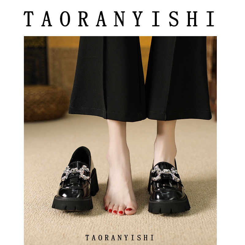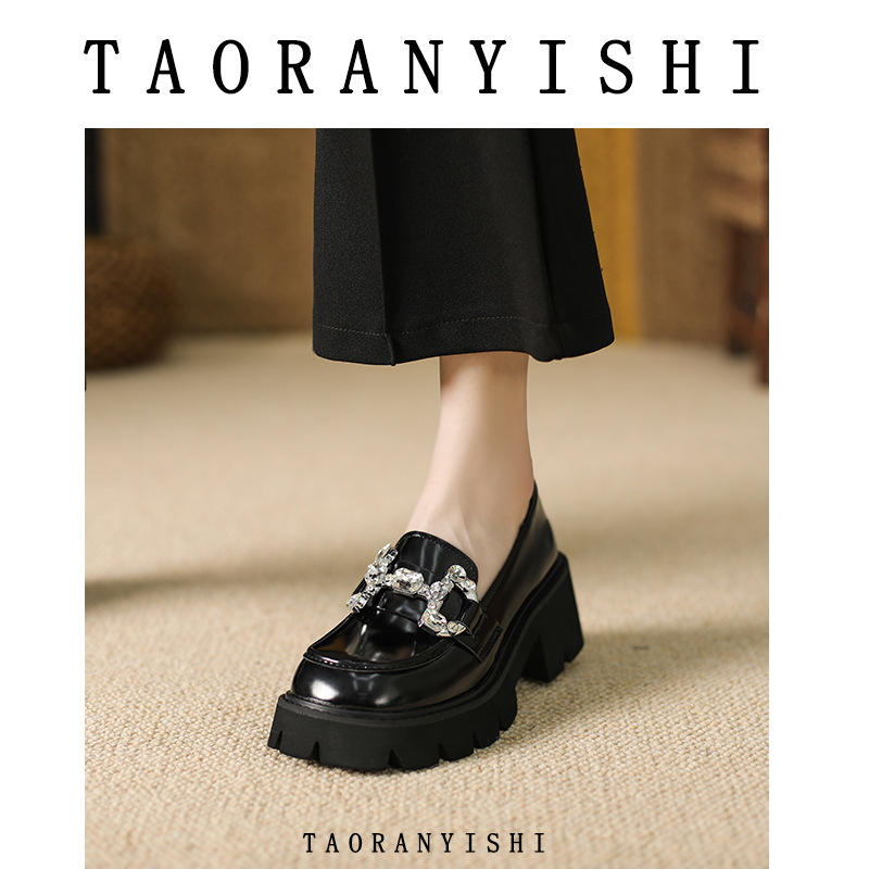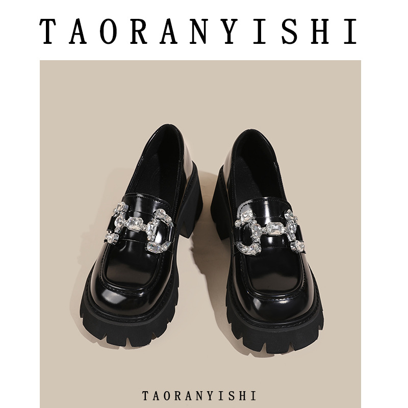 厚底JK单鞋女春新款学院风水钻马衔扣百搭乐福鞋 时尚小皮鞋