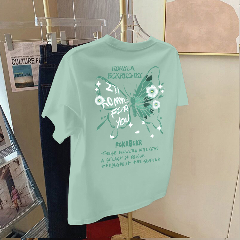 2025夏季新款薄荷绿纯棉短袖t恤女宽松百搭爆款正肩洋气减龄上衣