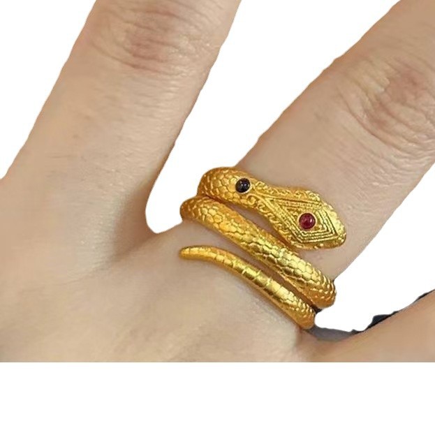 暴富小灵蛇戒指女古法重工缠绕蛇形指环新年过年饰品