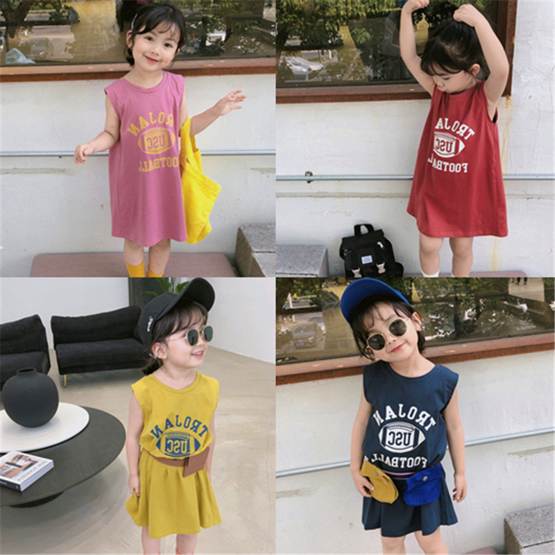 女童背心裙儿童长款t恤字母宝宝无袖连衣裙夏沙滩裙凉快宽松体恤
