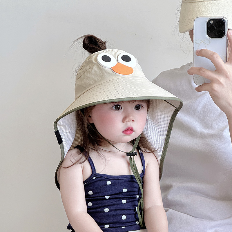 儿童帽子夏季薄款大帽檐遮阳防晒披肩空顶帽男女宝宝渔夫护脖帽潮