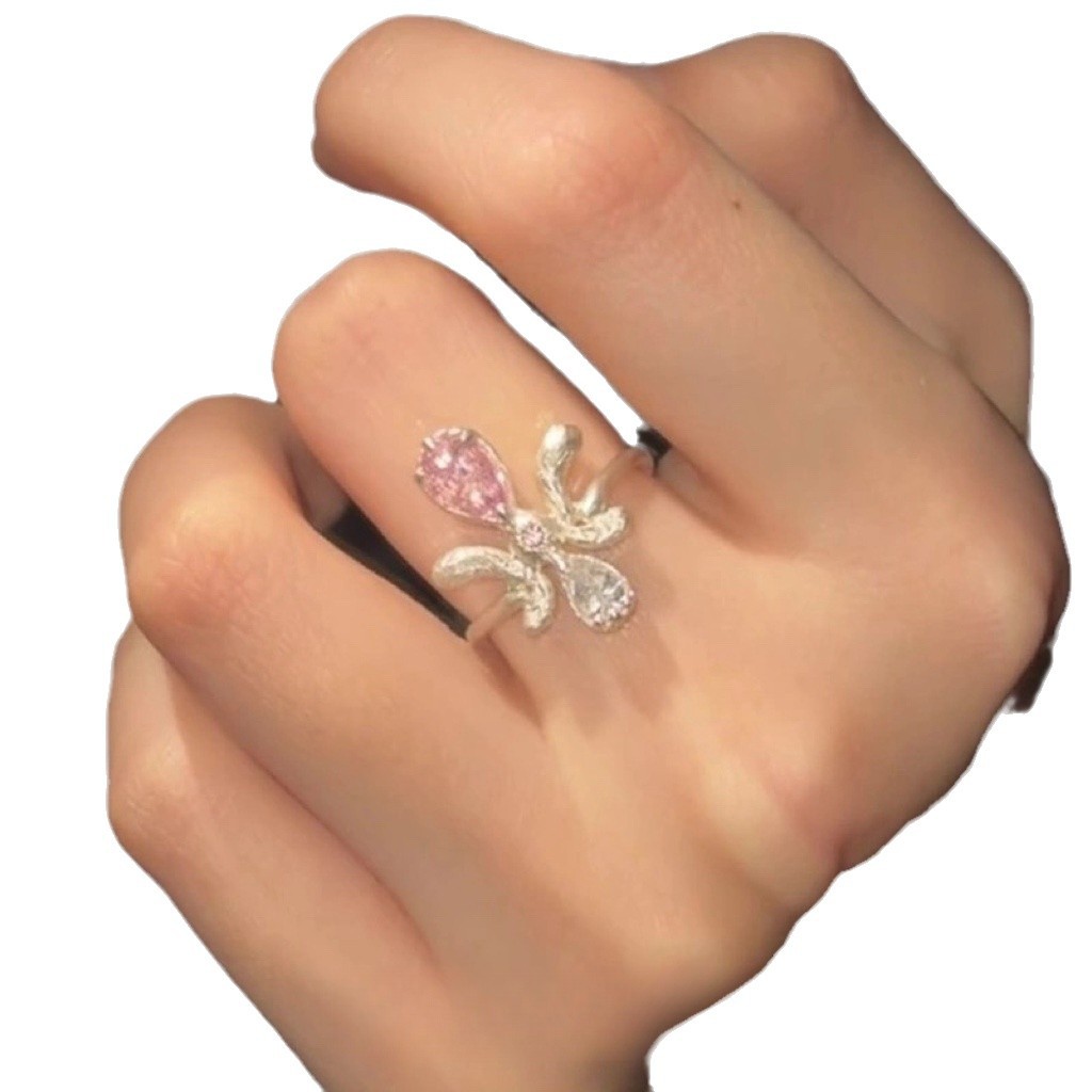 爆闪粉色锆石鸢尾花戒指清冷感设计个性轻奢气质高颜值食指戒