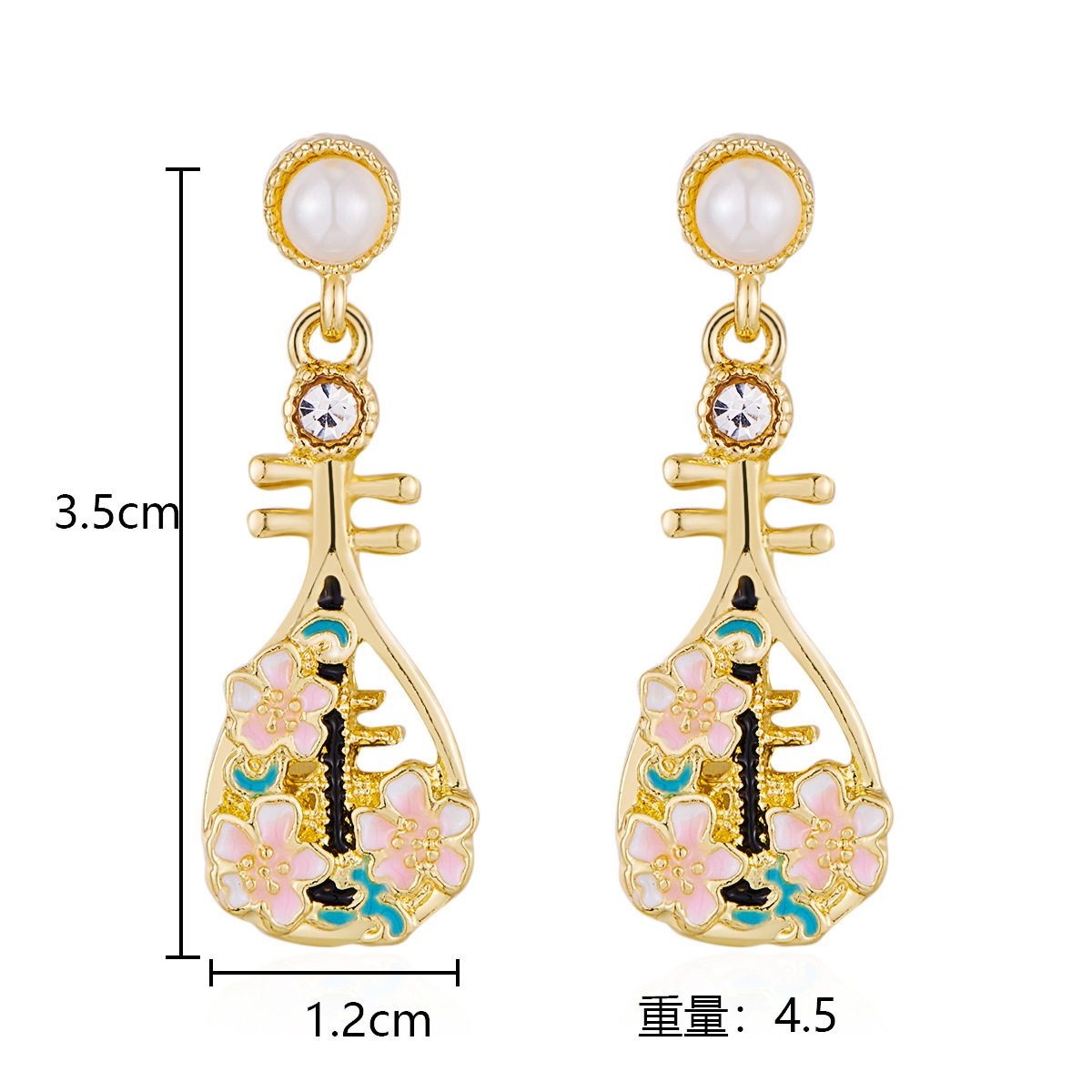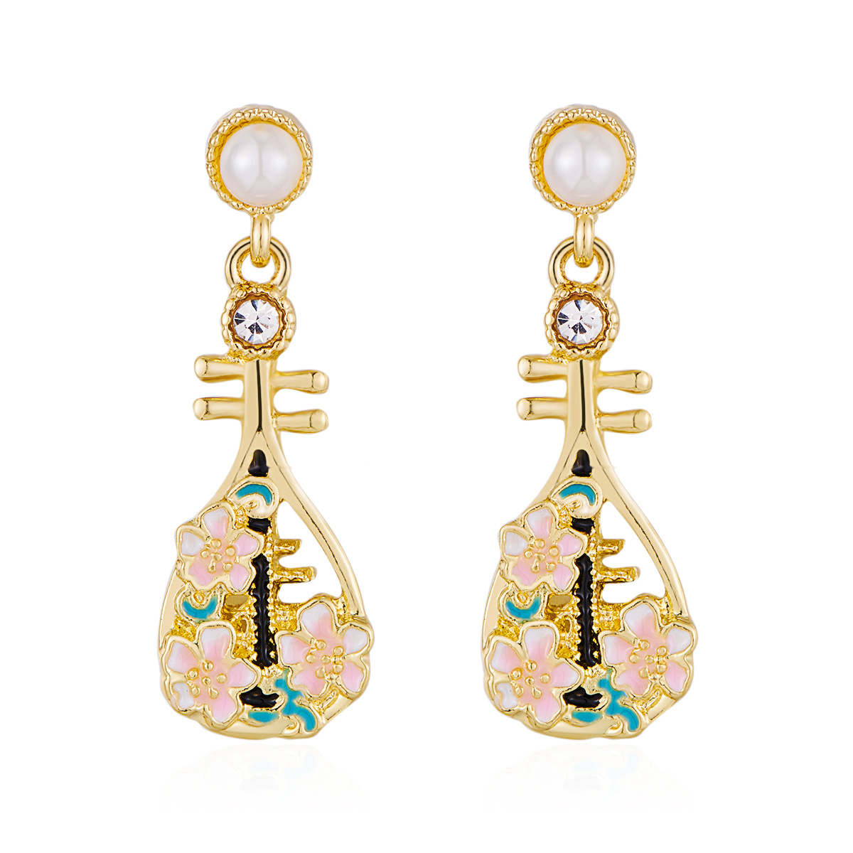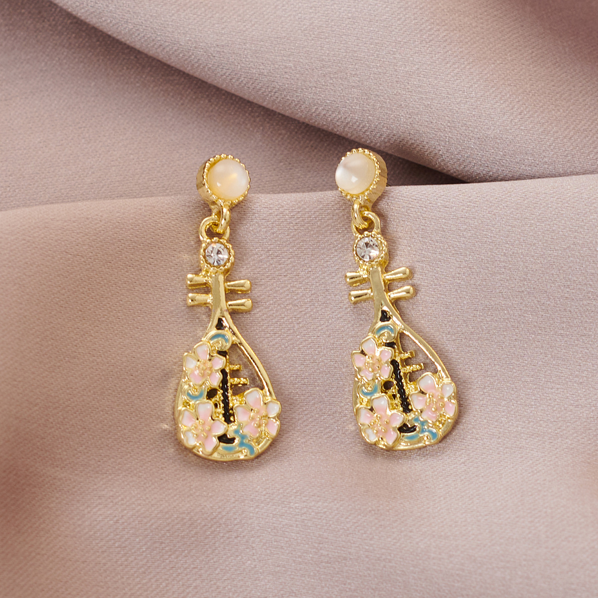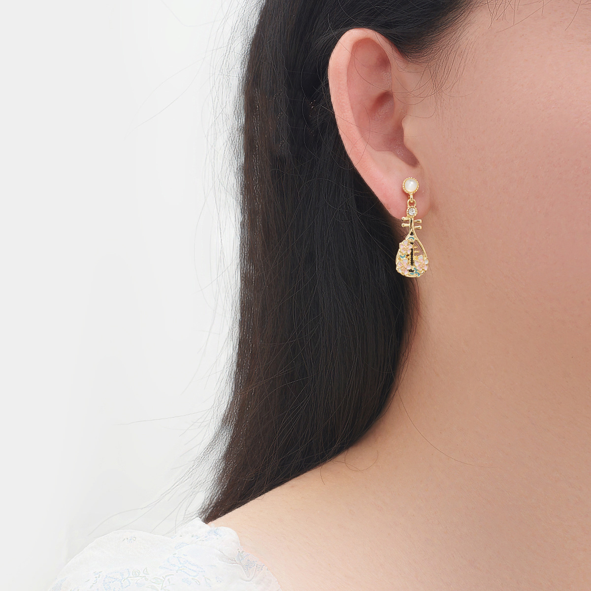 「抚琴幽弹」琵琶新中式滴釉花朵琵琶耳钉女古风汉服配饰高级感