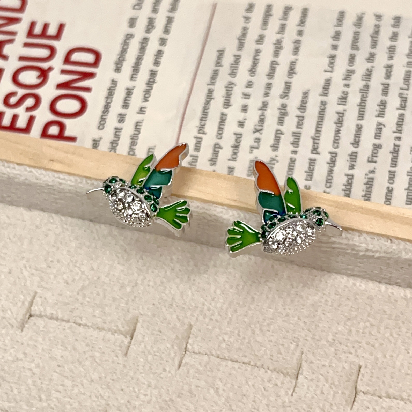 珐琅滴釉蜂鸟时尚耳钉精致耳环鸟轻奢风新中式轻奢迷你彩色鸟耳饰