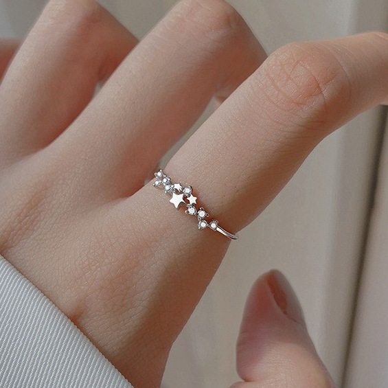 新款满天星星戒指年潮简约网红流星开口闪钻戒子感食指戒