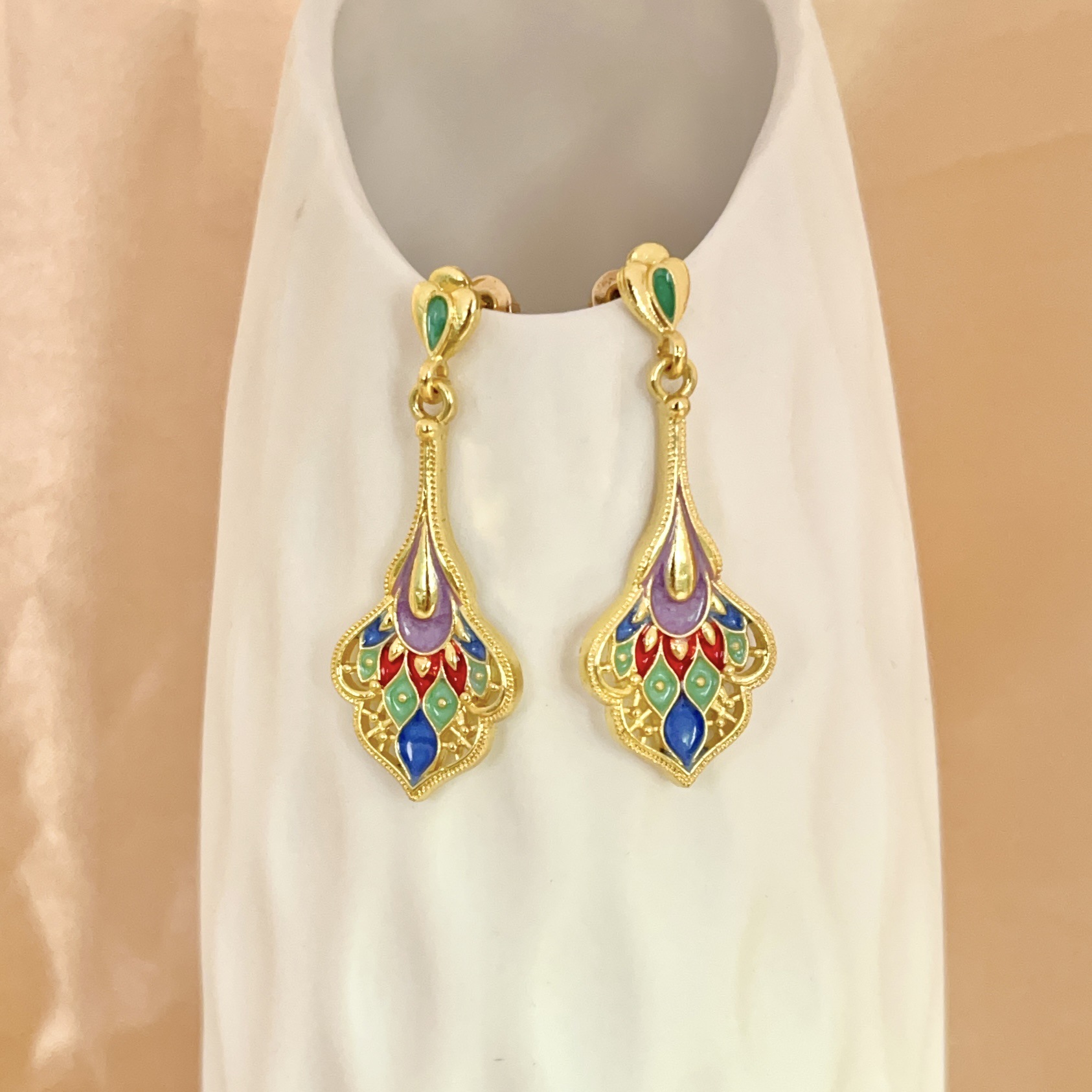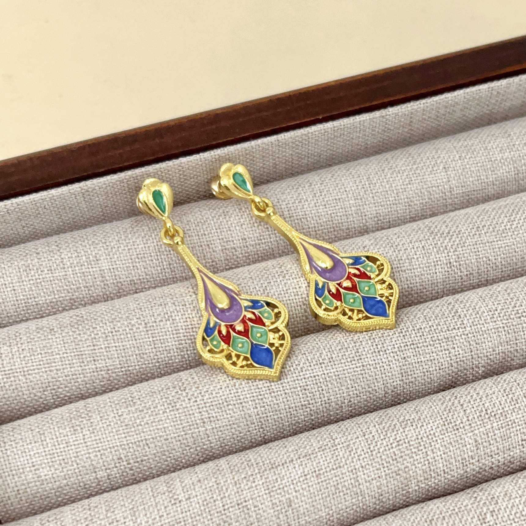 新款古法新中式凤羽耳钉高级感轻奢精致百搭小众设计简约凤羽耳钉