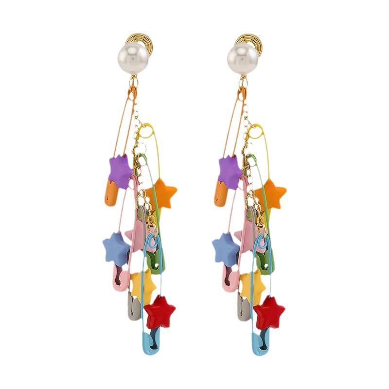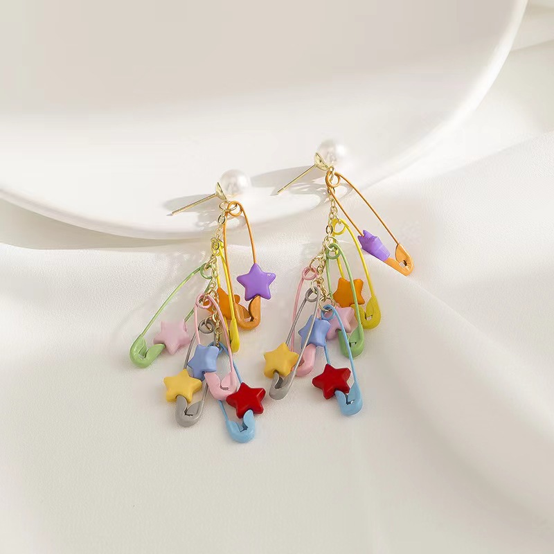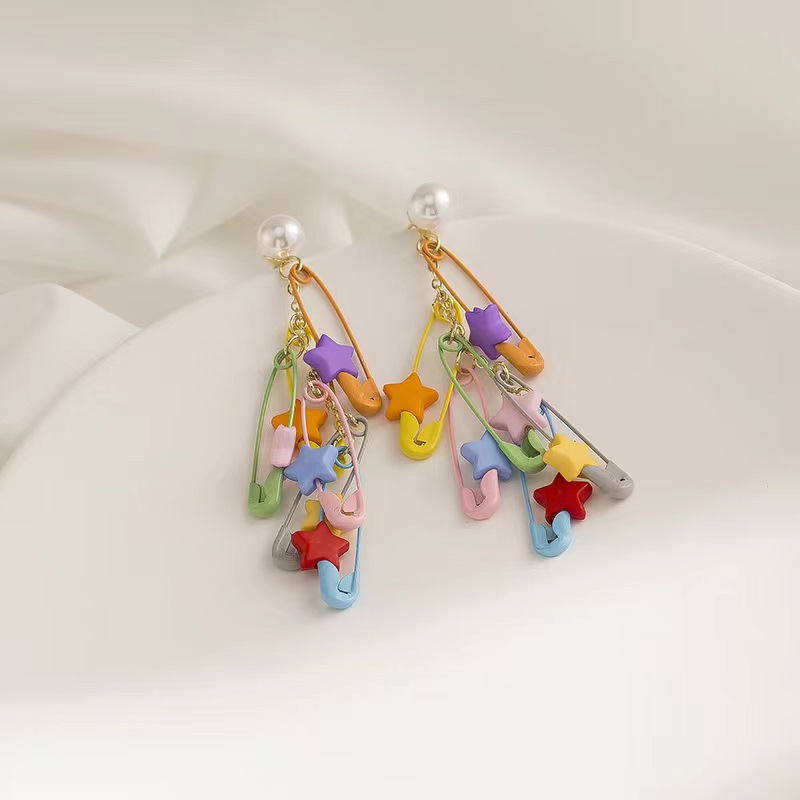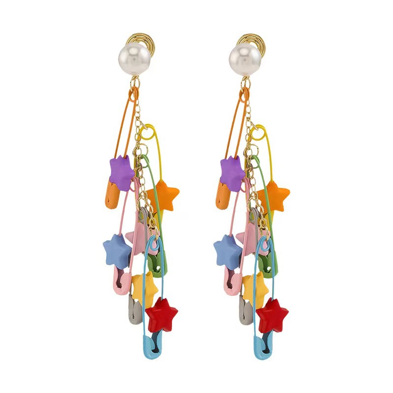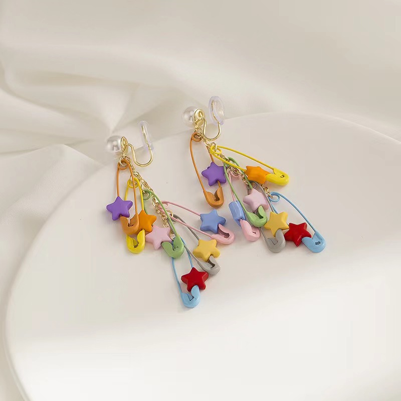 多巴胺彩色别针耳钉小众个性星星长款流苏耳饰蚊香盘耳夹无耳洞女