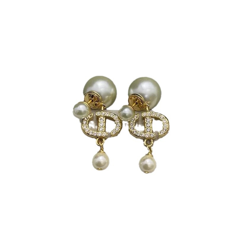 金色镶钻字母仿珍珠流苏耳环女轻奢高级耳钉新款爆款