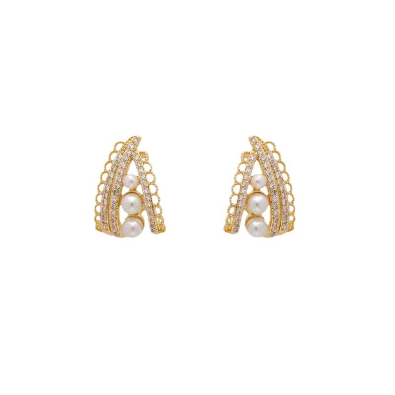 「芭蕾舞曲」法式蕾丝花边珍珠耳钉气质独特百搭冬天配大衣耳饰女