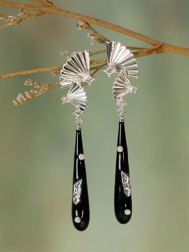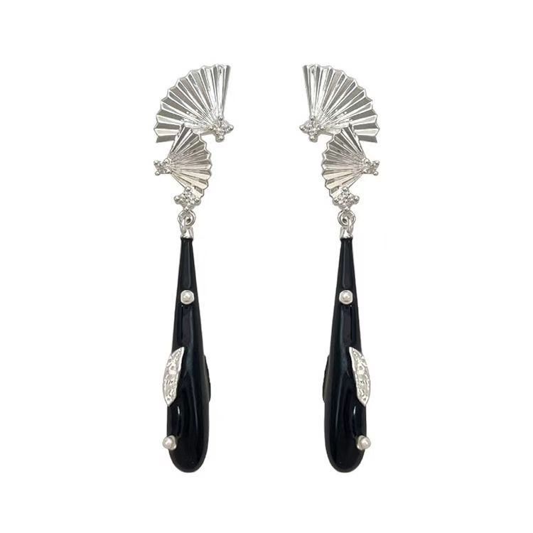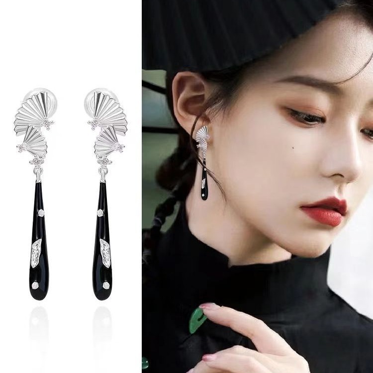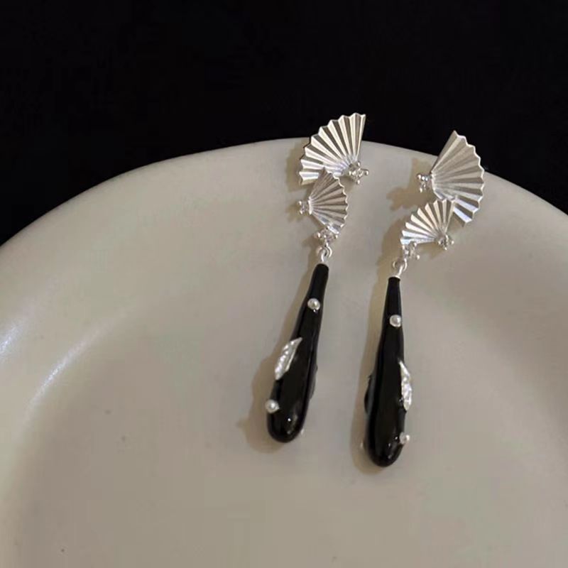 MZ-国风黑色扇面耳钉