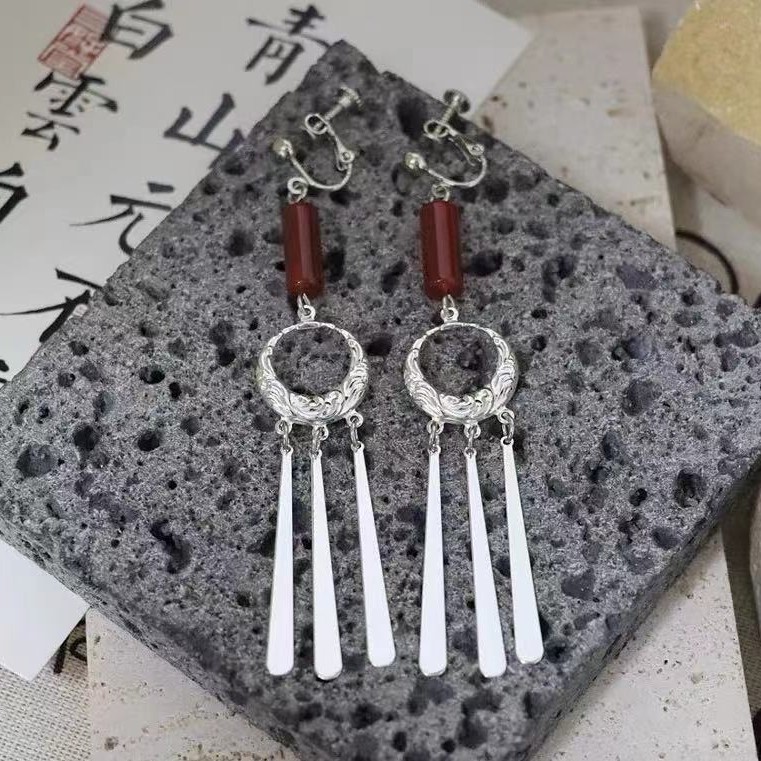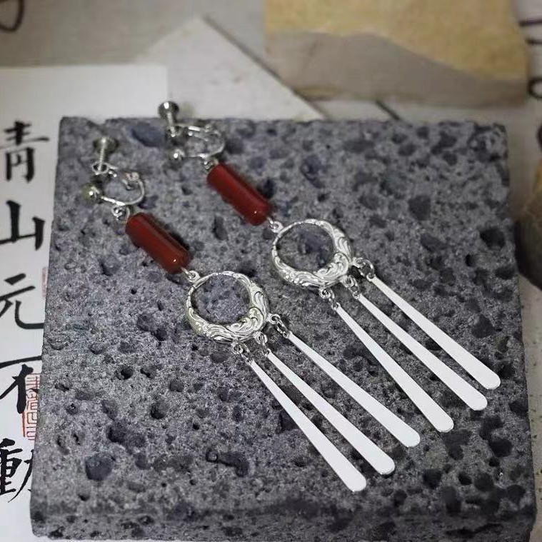 南小姐《带一支格桑》原创民族新中式苗族银色流苏长耳环大理耳夹