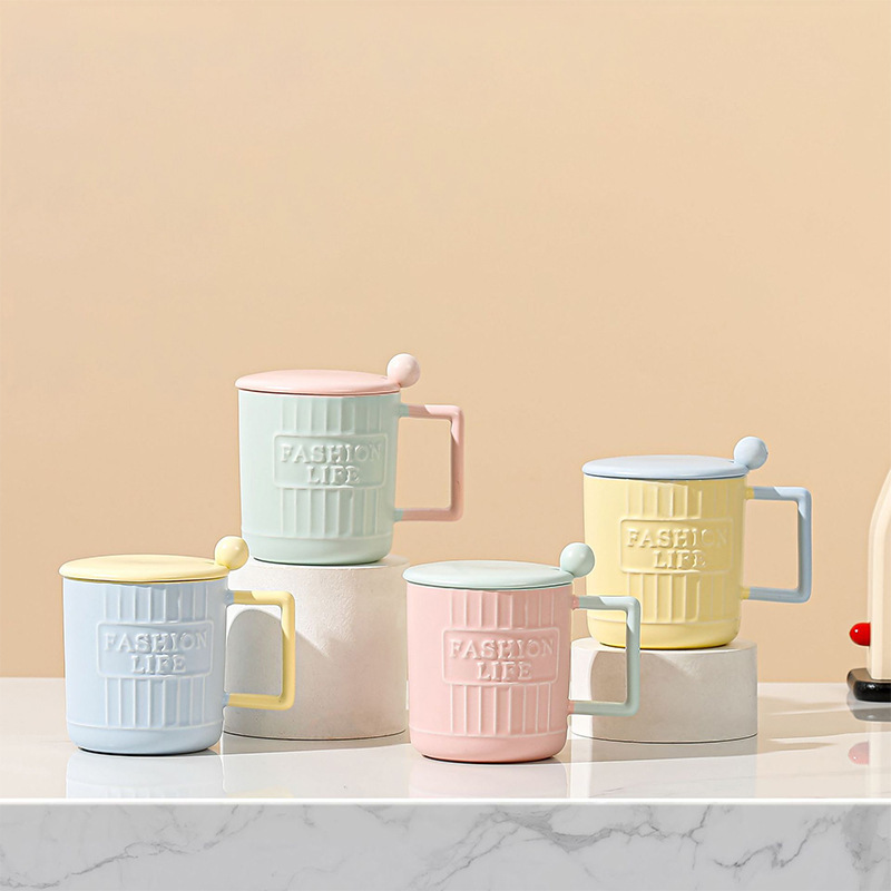 浮雕条纹陶瓷杯马卡龙撞色马克杯高颜值少女心情侣杯活动伴手礼