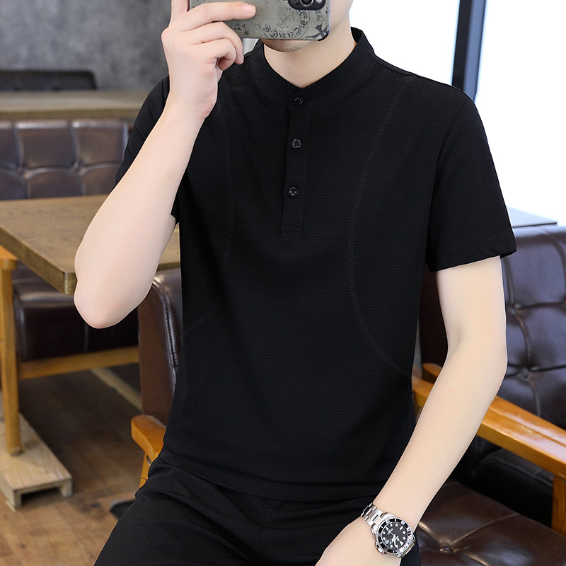 中国风古巴领三粒扣短袖T恤夏季新款中青年休闲短袖休闲T恤潮