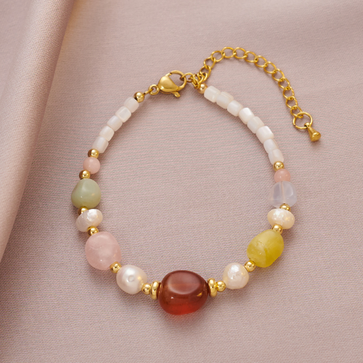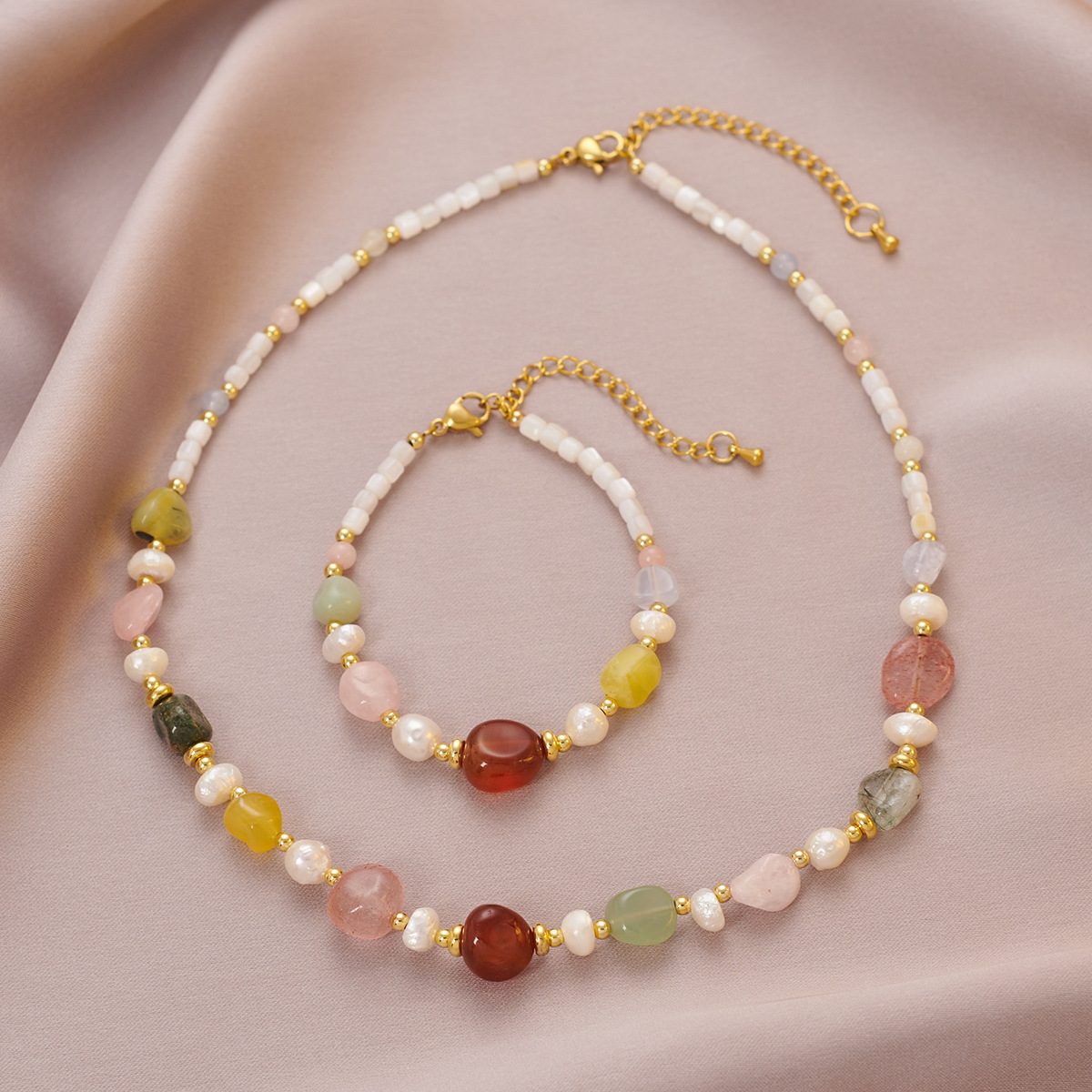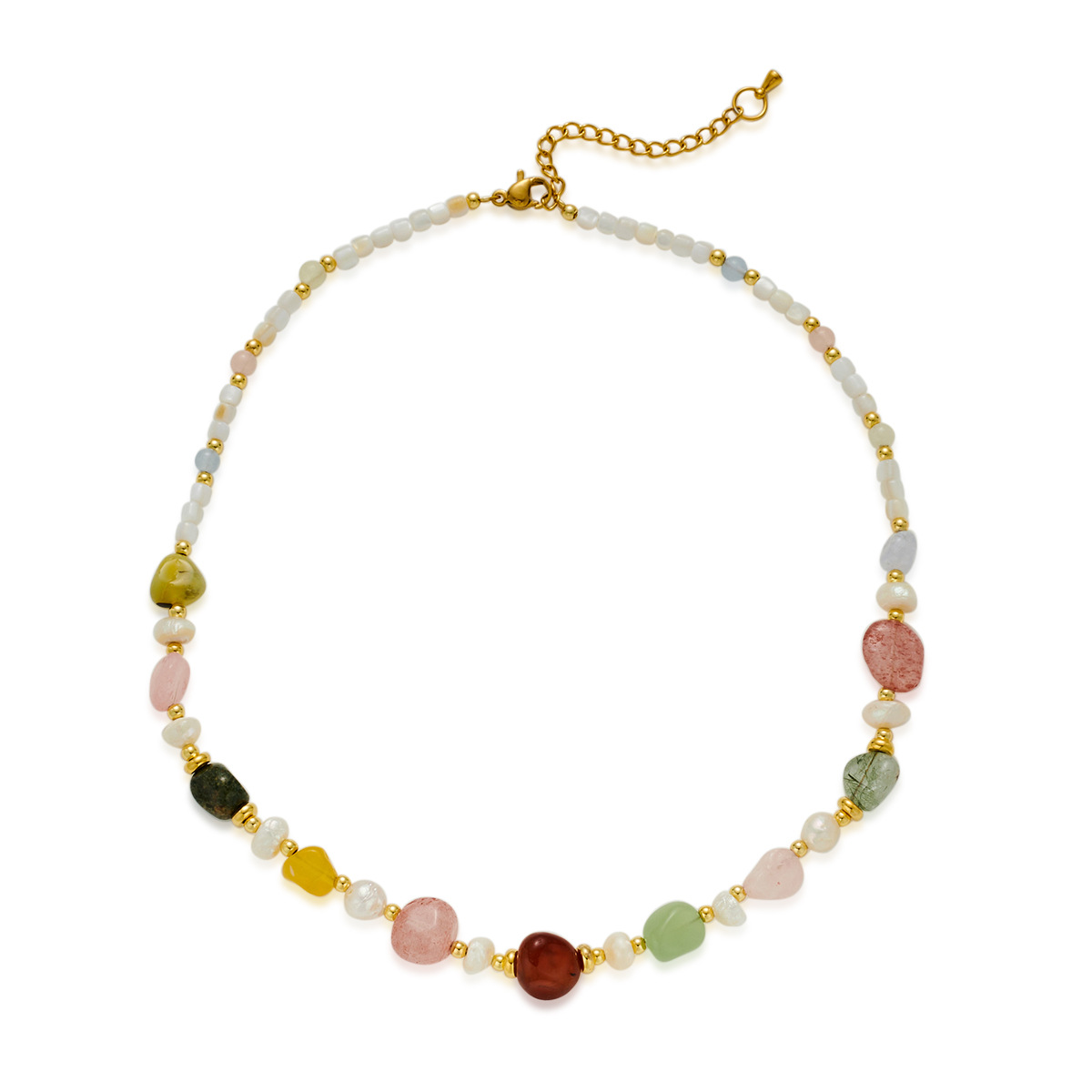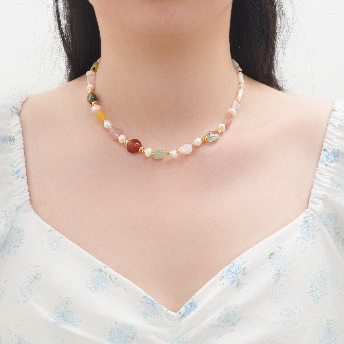 天然石新款淡水珍珠项链时尚精致爆款气质锁骨链百搭彩石简约项饰