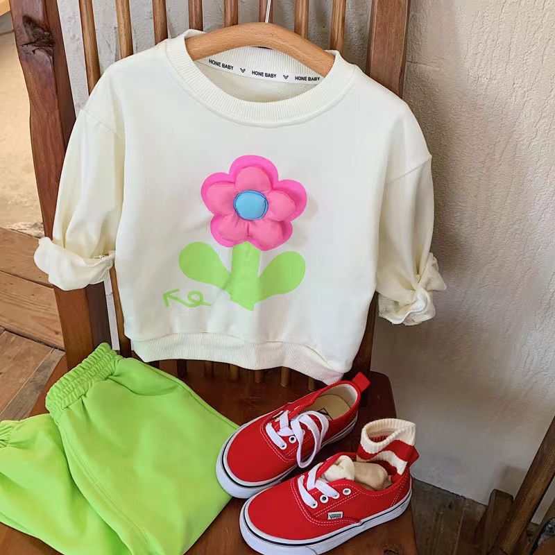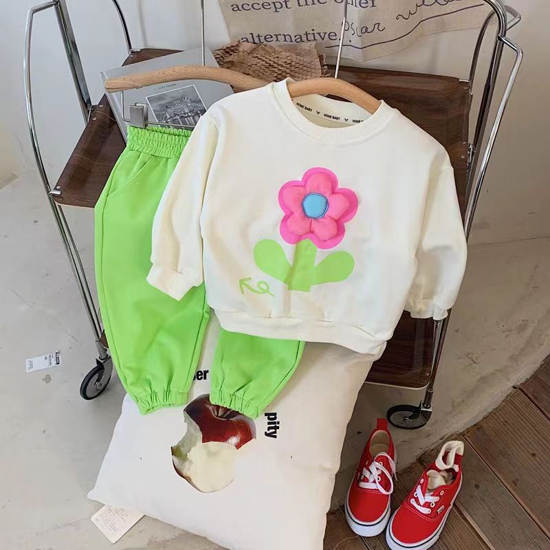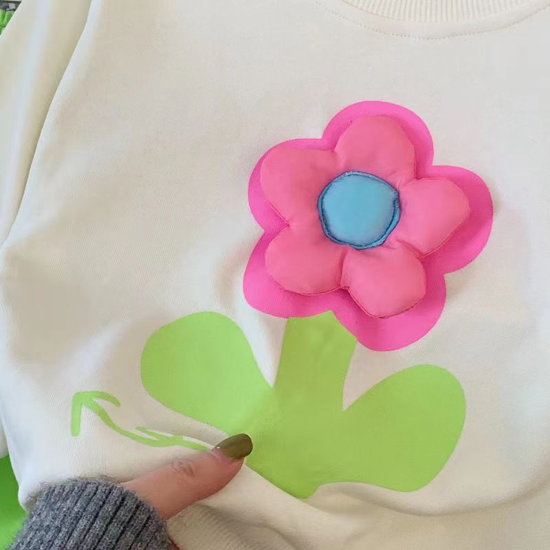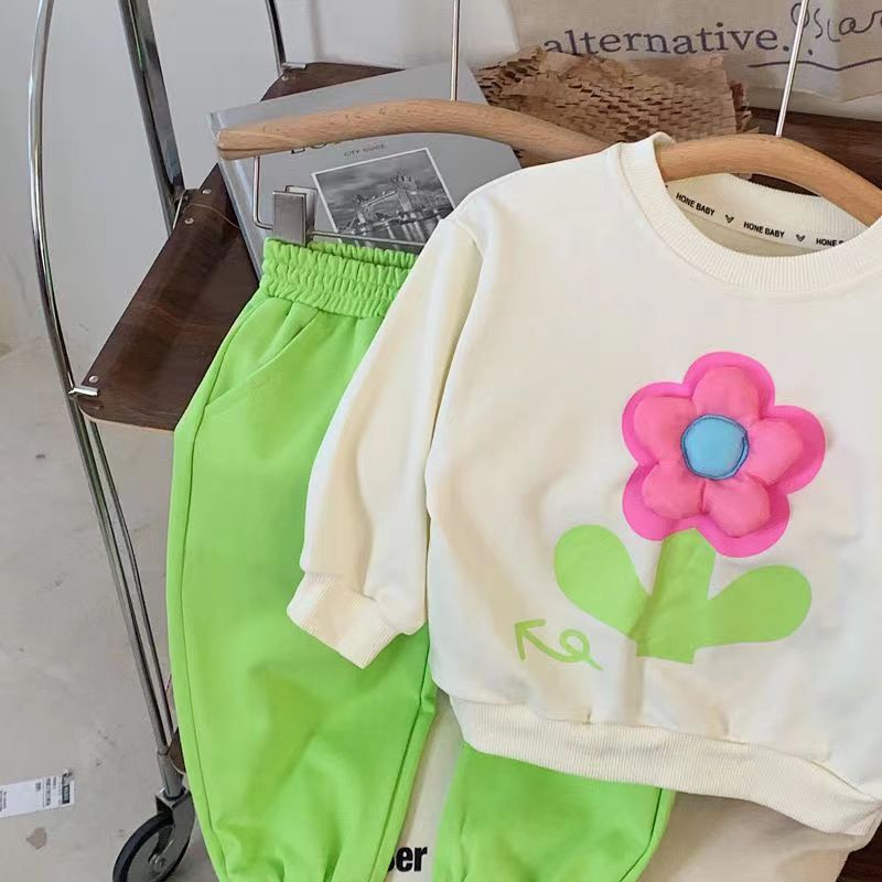 女童套装春秋新款一整套儿童立体花朵卫衣长裤幼儿园两件套潮