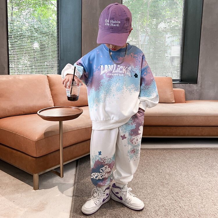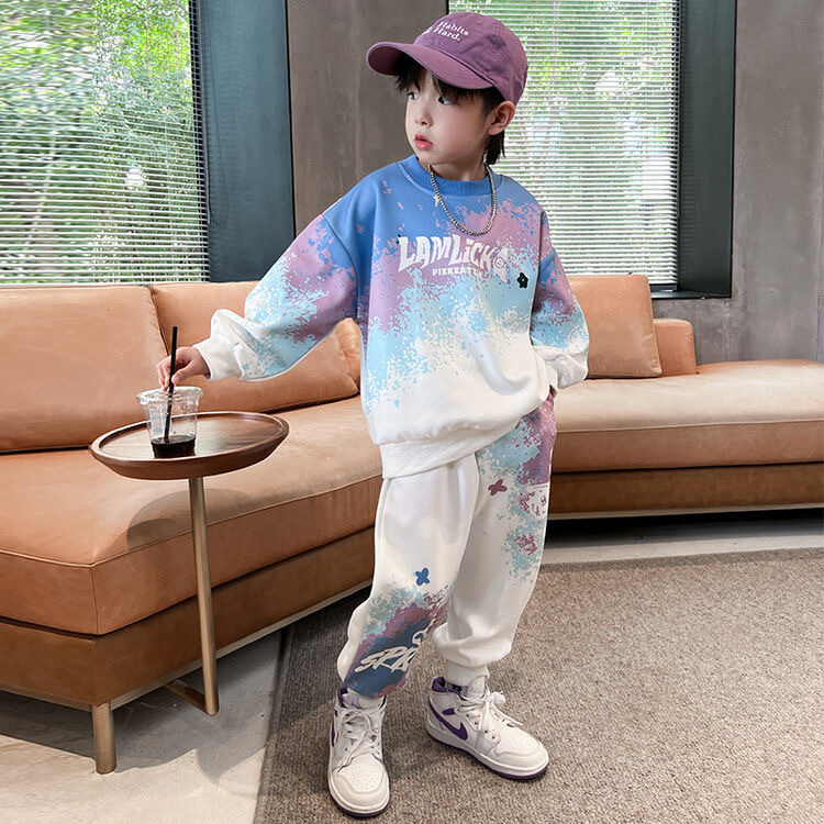 儿童男童春装套装新款春秋卫衣男孩秋季中大童帅气时尚两件套