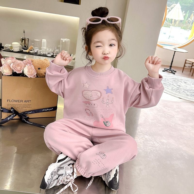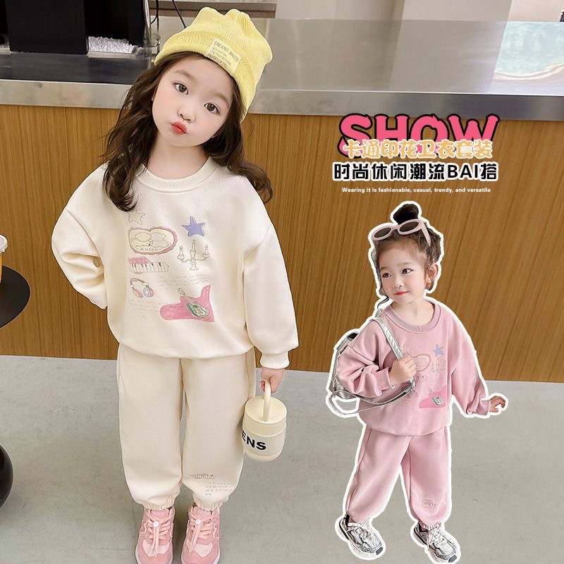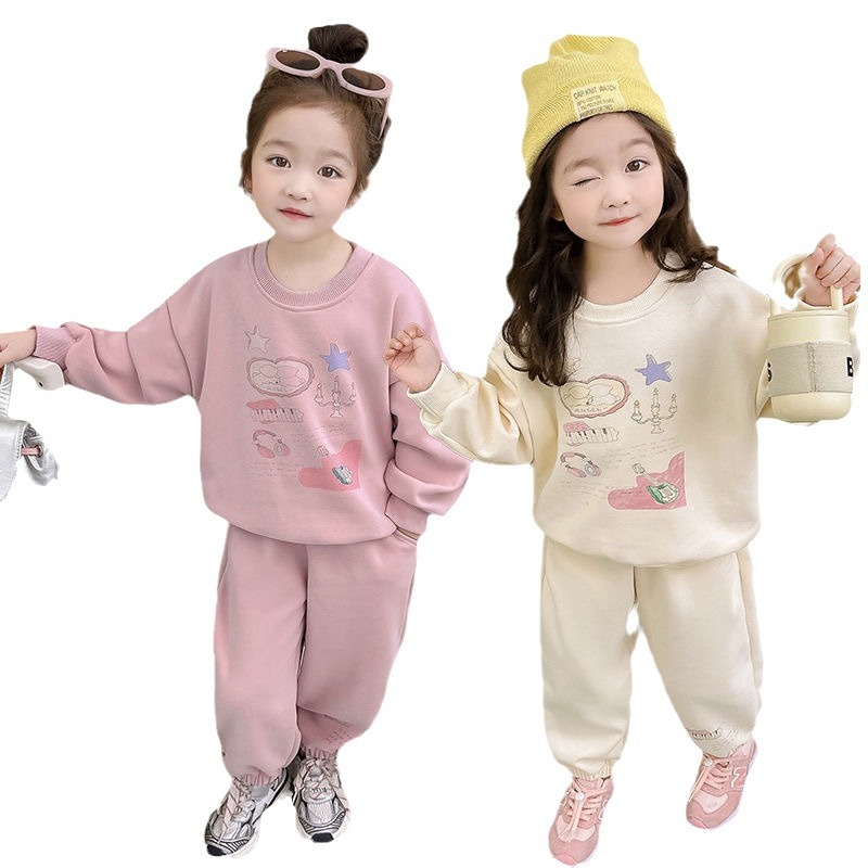 新款中小童套装韩版春秋女童新款宝宝洋气儿童卫衣休闲两件套童装