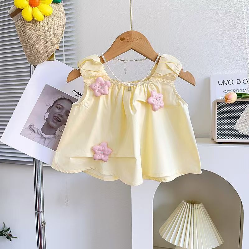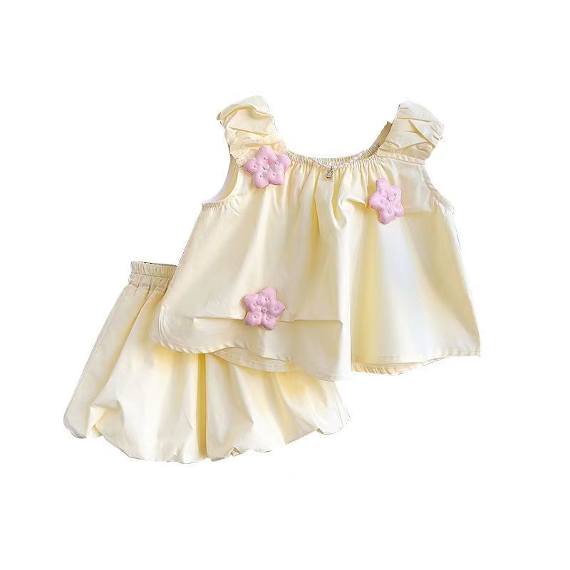 Bubble pants女童立体花苞套装夏季新款可爱无袖上衣短裤两件套