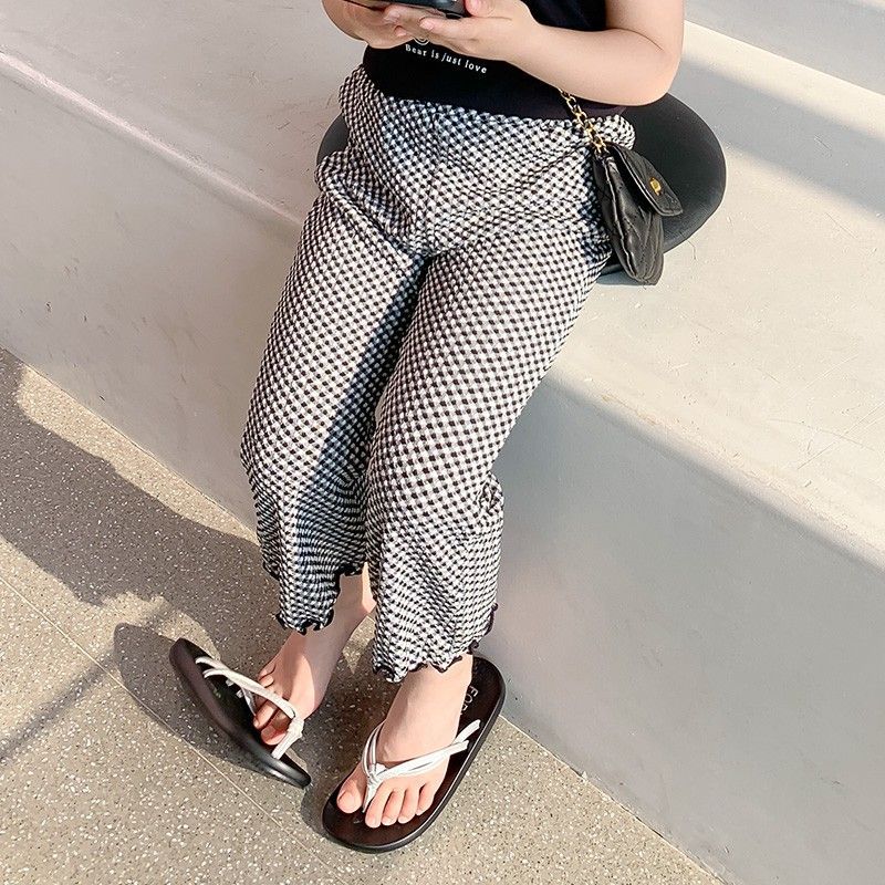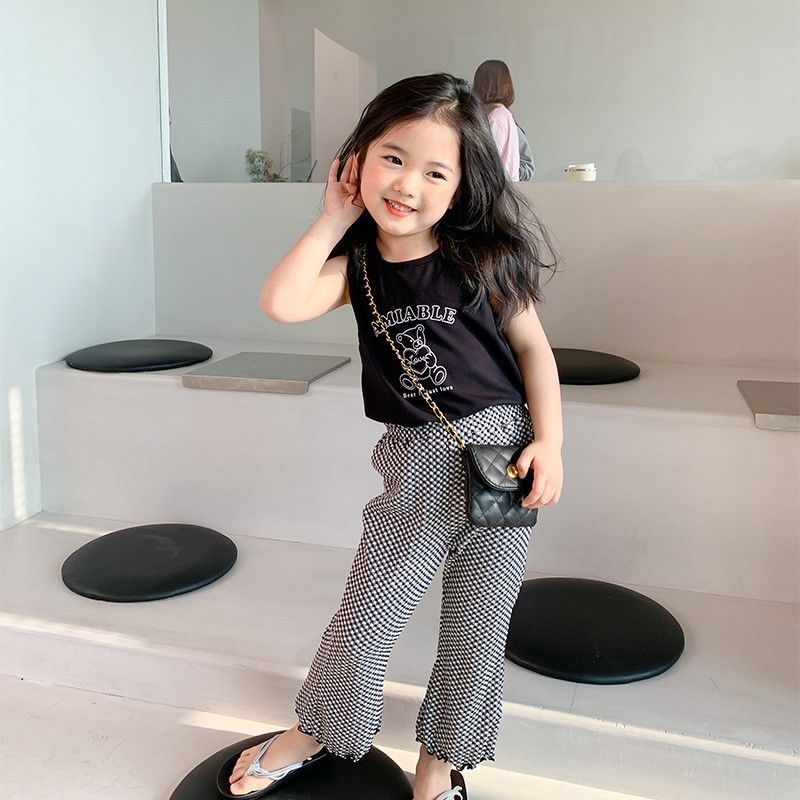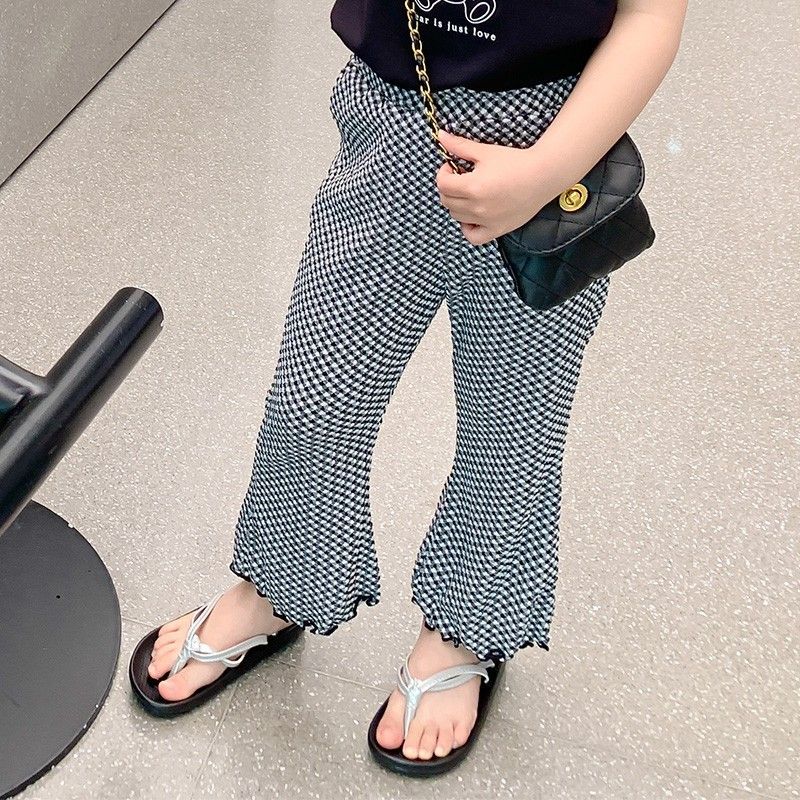 韩版女童春秋款洋气喇叭裤女宝宝时髦洋气百搭外穿薄款格子裤潮流
