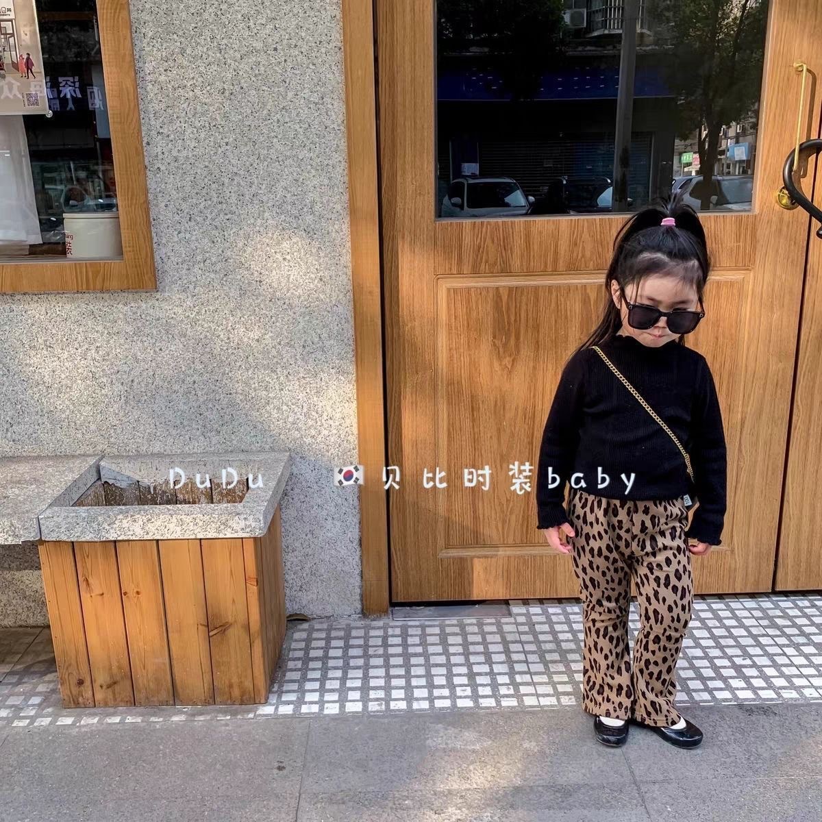 夏季韩版新款女童格子个性喇叭裤中小童洋气休闲薄款儿童豹纹长裤