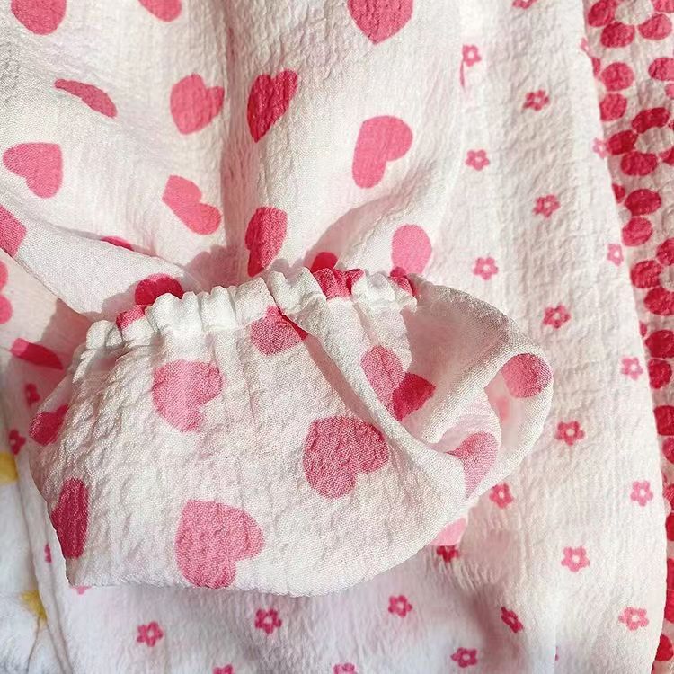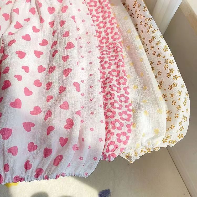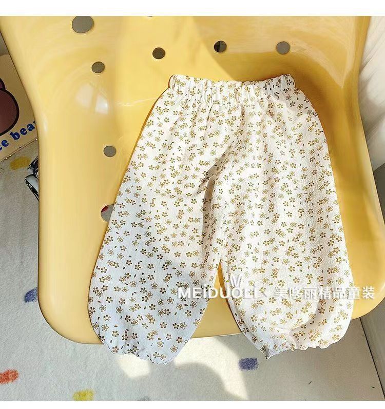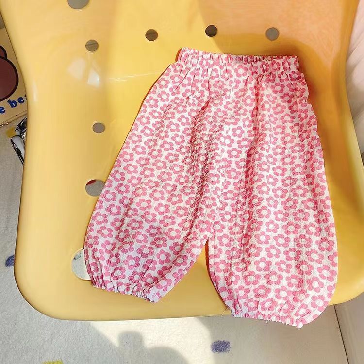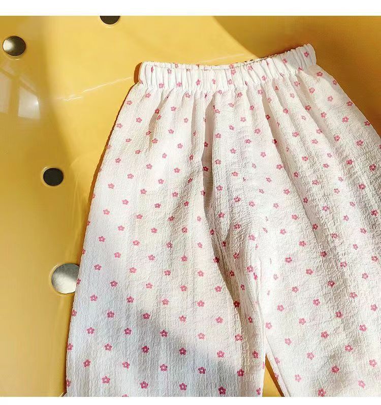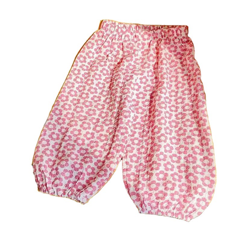 泡泡棉儿童复古碎花防晒裤百搭防蚊裤女童夏印花中高腰度假沙滩裤