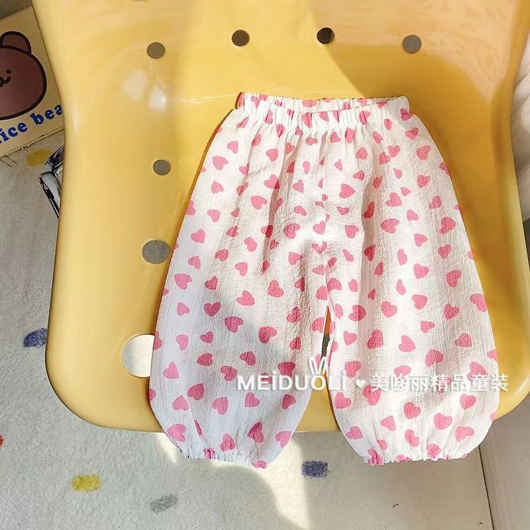 艾摩贝贝儿童山本裤夏季女童韩版宽松薄款醋酸绒休闲裤子