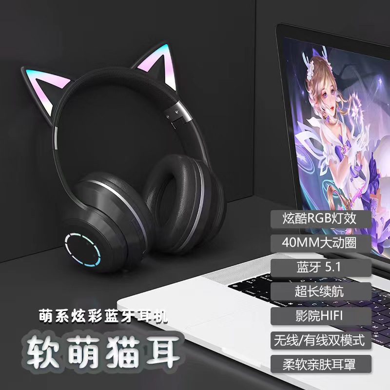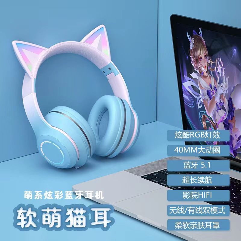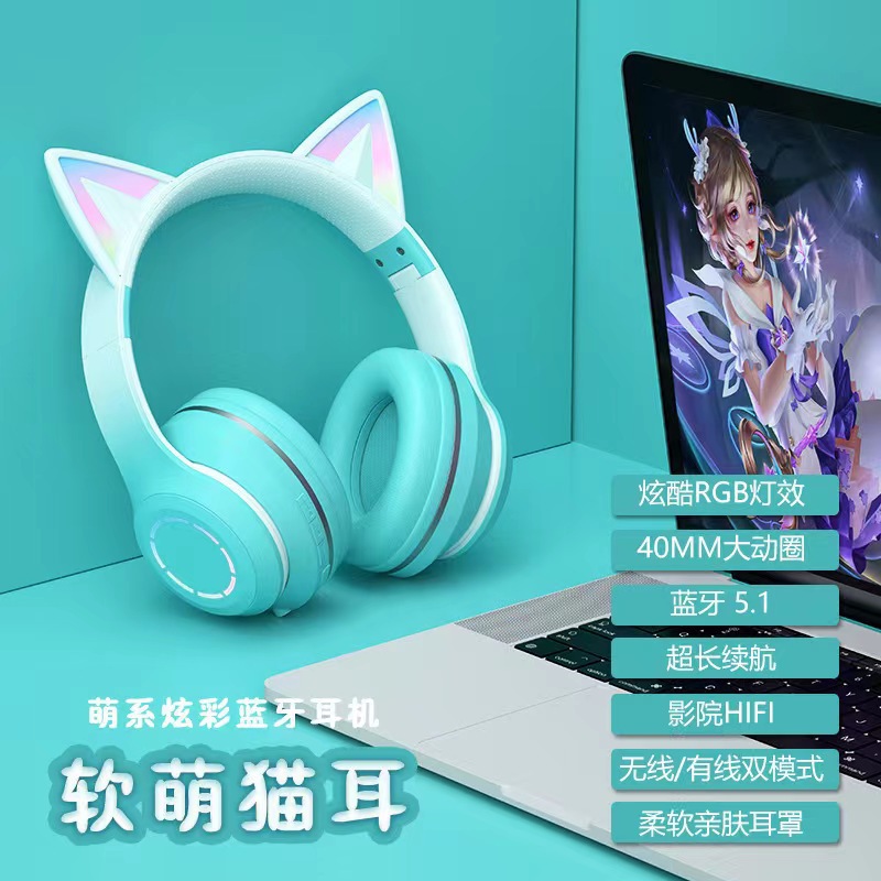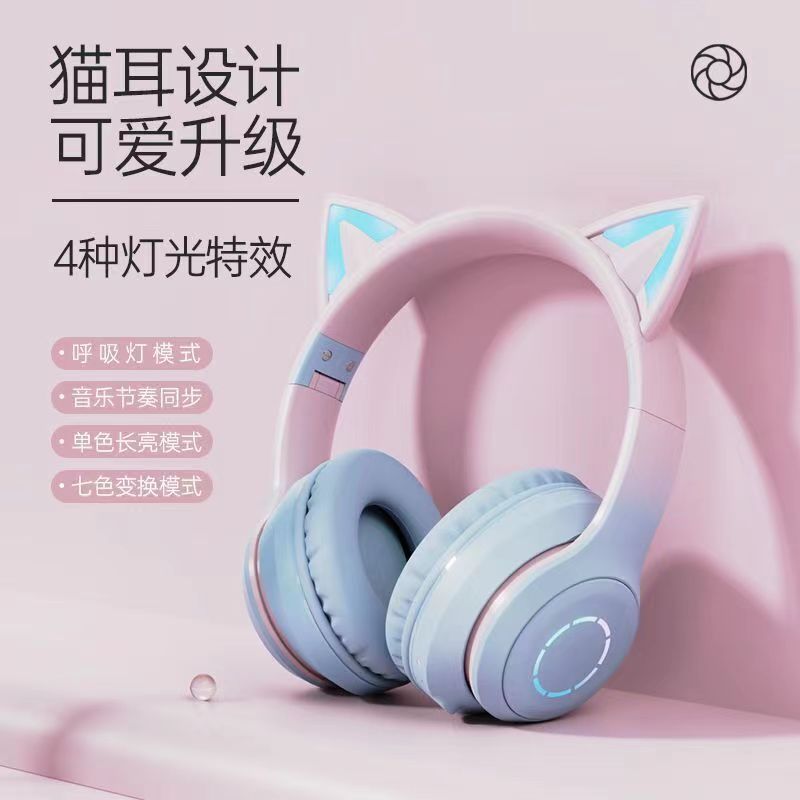 新款电竞猫耳朵渐变色蓝牙耳机头戴式品质高颜值手机无线通用游戏